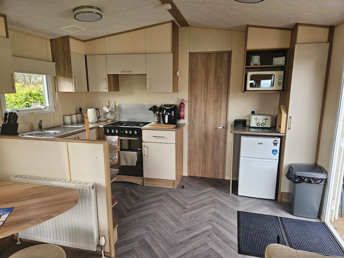 Nous sommes fiers que notre cabane en bord de mer avec jardin privé ensoleillé soit l'une des maisons les mieux notées sur Airbnb ! Il est à deux pas de la Transpennine Way, de la plage et de Hornsea Mere. Nous accueillons un petit chien bien dressé et deux personnes. Notre lit super king peut être divisé en deux lits jumeaux sur demande. Il y a une belle douche chaude, une télévision intelligente, une connexion Wi-Fi, un réfrigérateur-congélateur, une bouilloire, un grille-pain et un four à micro-ondes. Le lit, le bar pour le petit-déjeuner et les canapés confortables donnent tous sur le jardin privé qui a des portes pliantes sur la terrasse.