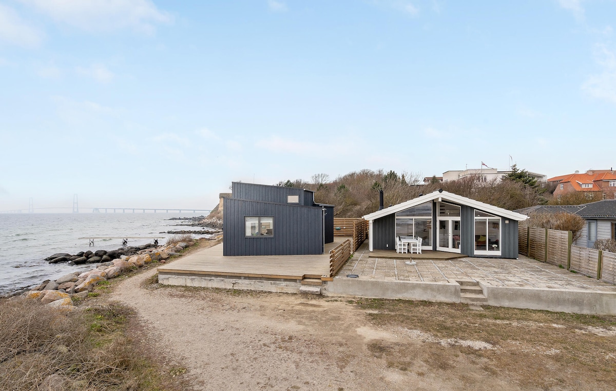 Cet endroit rare et unique est situé directement sur le front de mer avec une vue très agrandie sur la mer et le pont Storebælt. La maison est située sur un cul-de-sac calme sur un magnifique terrain naturel de 3 100 m2 avec des pins. Ici, vous pourrez vraiment profiter du silence et de la nature brute. Storebælt est juste devant chez vous. Le chalet est meublé de manière chaleureuse et comprend des chambres spacieuses, une salle de bain, un salon et un espace cuisine-salle à manger ouvert. La vue sur la mer peut être appréciée depuis toutes les chambres.
