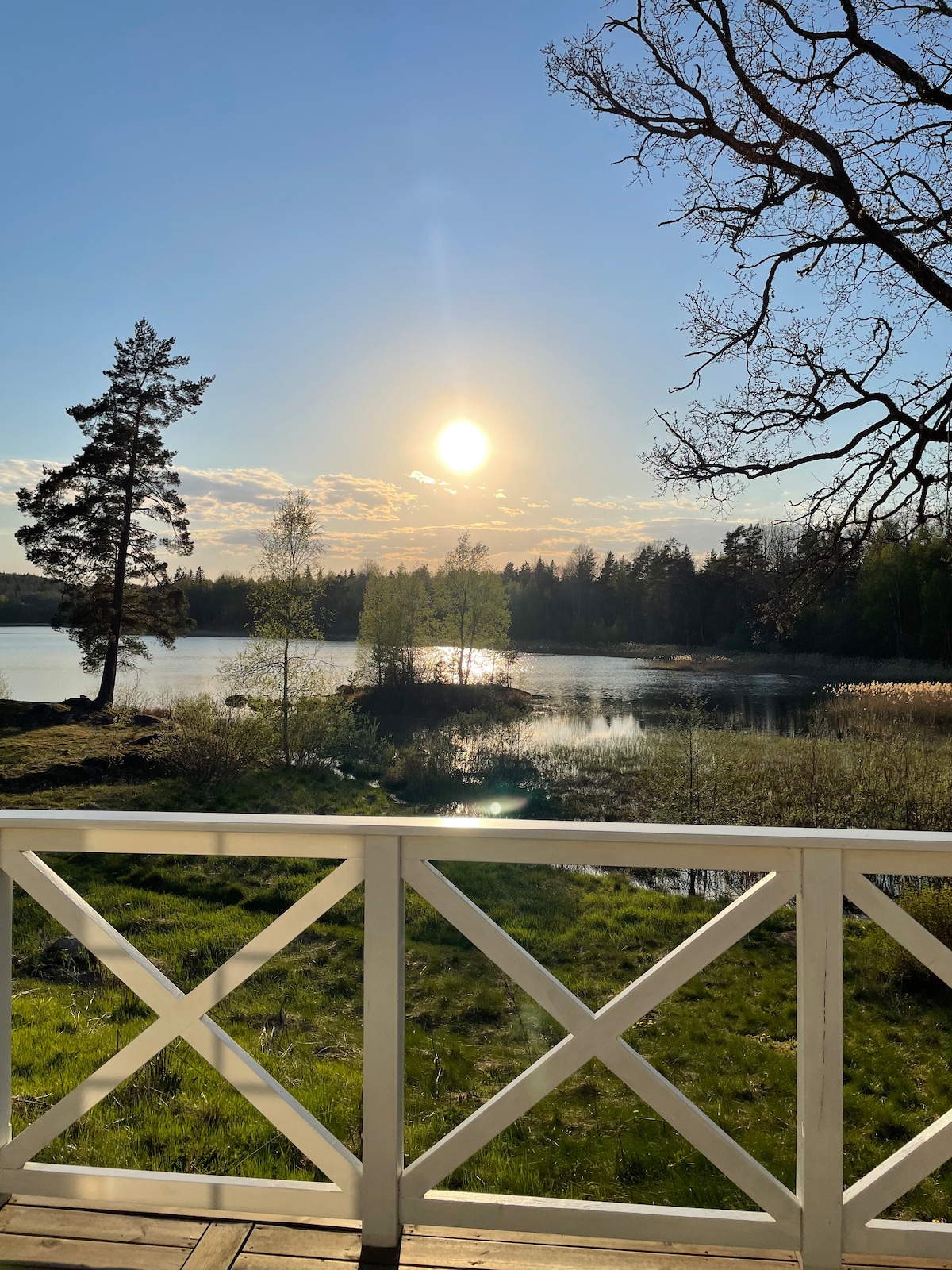 Chalet avec 2 chambres et cuisine du 19e siècle, récemment rénové dans le style ancien avec nouvelle cuisine avec lave-vaisselle et salle de bain entièrement carrelée avec douche, lavabo et toilettes. Eau chaude. La cabane est située sur une colline avec vue sur le lac depuis la véranda et les deux chambres. La véranda reçoit le soleil du matin et le patio reçoit le soleil de l'après-midi et du soir. Barbecue. Le séjour dispose d'une cheminée. Un sauna privé au feu de bois au bord du lac peut être loué, ainsi qu'un bateau à rames. Possibilité de faire de la randonnée, de la pêche, de la cueillette de baies et de champignons. Un magnifique paysage culturel ancien.