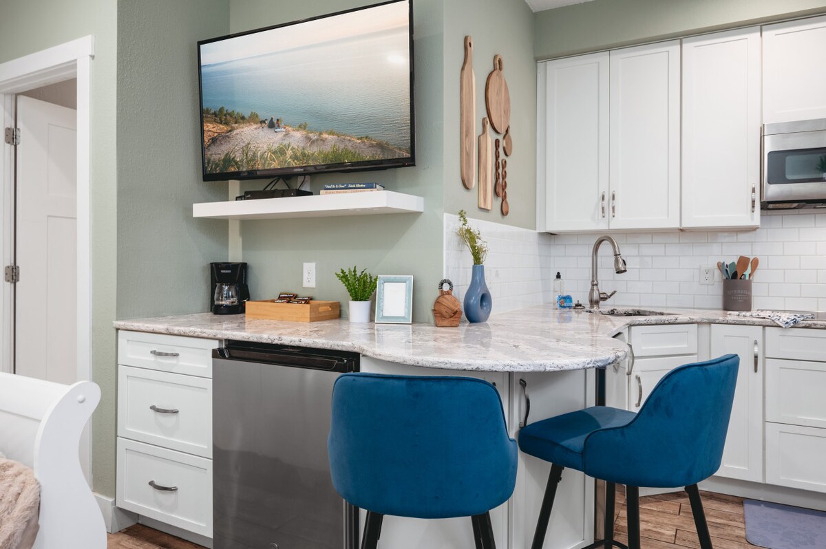 Bienvenue dans votre maison loin de chez vous tout en explorant Traverse City. Ce condo d'une chambre au centre-ville a été conçu avec soin en gardant à l'esprit le confort et le style. Détendez-vous dans la salle familiale avec de nombreux sièges et une télévision intelligente avec câble et applications de streaming. Détendez-vous dans la chambre avec un tout nouveau matelas en mousse à mémoire de forme. Préparez n'importe quel repas dans une cuisine entièrement équipée. Le logement est situé dans le centre-ville de Traverse City, directement sur le sentier TART pour un accès facile à tout ce que la région a à offrir ! Livré avec deux vélos neufs !