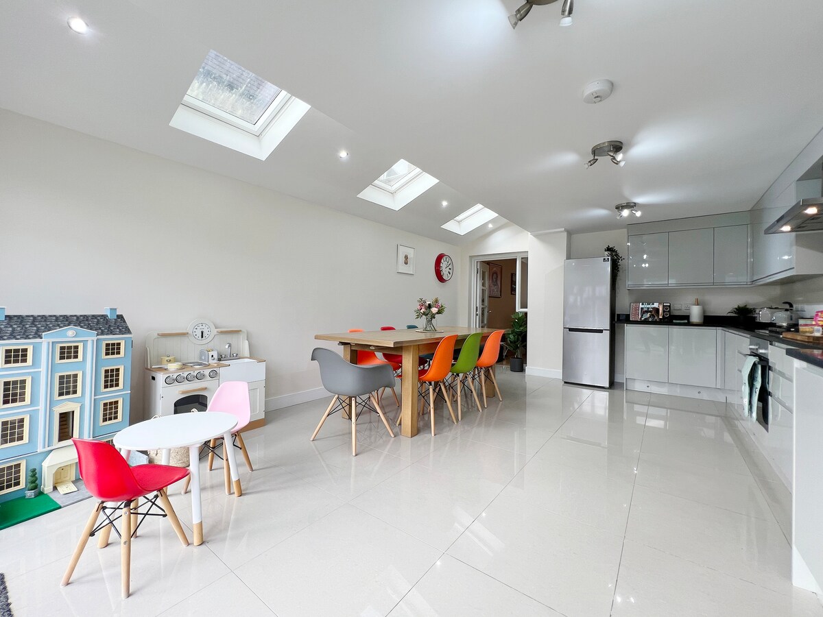 Amusez-vous avec toute la famille dans ce logement chic. Une belle maison dans un environnement pais et sûr, à distance de marche du célèbre sentier pédestre de Burnham Beeches. Farnham Royal dispose de nombreux vieux pubs britanniques, de parcours de golf, de restaurants locaux et de boutiques. Situé à seulement 10 minutes en voiture du château de Windsor ou de la ville de Beaconsfield, et avec un accès facile à toutes les principales autoroutes menant aux parcs d'aventure ou au centre de Londres. Nous sommes à 20 minutes de Londres Heathrow et de 2 gares ferroviaires locales principales.