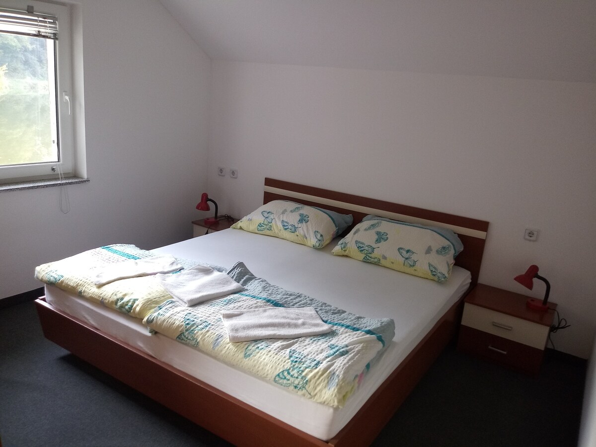 Un endroit idyllique pour se réveiller, écouter les oiseaux chanter, profiter de l'air frais et regarder les étoiles dans un ciel clair. De l'autre côté de la route de la maison se trouve un petit ruisseau où vous pourrez vous détendre. Emplacement paisible, à seulement 10 km d'Idrija et entouré de forêt. L'endroit idéal pour échapper aux villes animées. Idéal pour la randonnée, le vélo, la baignade, la pêche, la géologie, la faune. Important : - depuis Idrija, il y a 10 km de route de montagne sinueuse - mieux avec votre propre transport ; - Il y a quelques marches pour accéder à l'appartement.