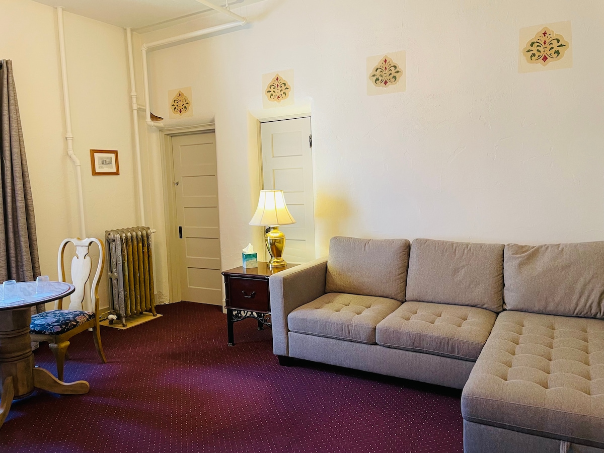 Bienvenue à l'hôtel Grabow, une boutique historique de 1908 située dans le centre-ville de Livingston, MT, qualifié par Architectural Digest de « l'un des plus beaux centres-villes d'Amérique ». Hauts plafonds, planchers en érable oiseau et beaux halls spacieux sur les trois étages. À quelques pas des restaurants, de la bibliothèque, des galeries d'art, des cafés et des bars/pubs. L'un des premiers hôtels élégants de la ville d'origine de la passerelle ferroviaire des années 1880 à Yellowstone, le premier parc national au monde !