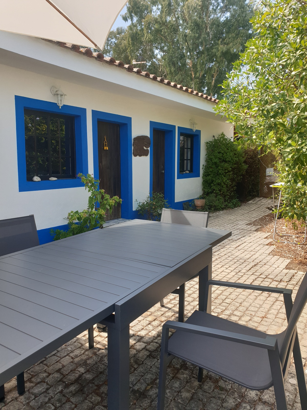 A typical portuguese house with two charming bedrooms and two bathrooms: - one double bedroom with own bathroom, a small entrance area and a sofa to have some coffee and tea and a private terrace in front - one twin bedroom with own bathroom, a kitchenette, a small living room and a big terrace in front with outside seating Perfect for a family or two couples.