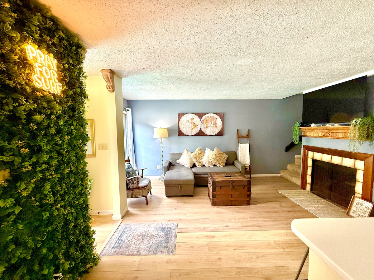 Êtes-vous fatigué de séjourner dans le même vieux Airbnb délabré ? Dès que vous entrerez, vous ressentirez la magie. ✨ Nouvel espace moderne et propre et étincelant 🌊 Vibrant Aquarium : décorez vos enfants adoreront ! 🚶♀️ À quelques pas de la plage, pas de problème de stationnement. Équipement de 🏖️ plage fourni pas d'emballage supplémentaire ! 🚿 Douche extérieure 🔥 Cheminée confortable 🌅 Balcon privé SeaBreeze Cottage est le début de souvenirs que vous chérirez pour toujours. Réservez maintenant et commencez le compte à rebours des vacances à la plage de vos rêves !