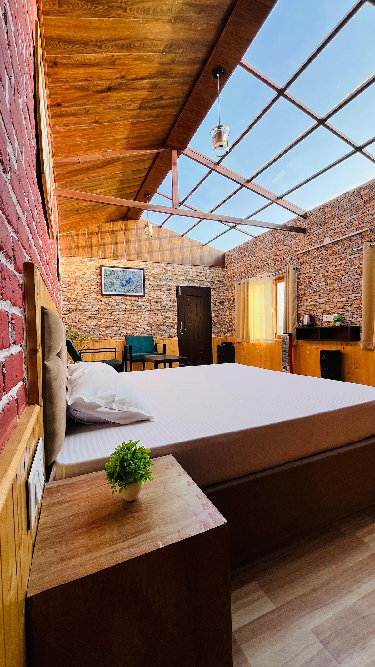 Thoughtfully designed pod stays offer modern comfort in a peaceful hilltop setting, ideal for slowing down and reconnecting with nature. The Space Each pod features cozy interiors, comfortable bedding, a private bathroom, and essential amenities including Wi-Fi. What Makes This Stay Special • Quiet, spacious surroundings with scenic views • Unique pod-style accommodation • Open outdoor areas for walks and relaxation • Close to local viewpoints and nature trails in Rajgarh