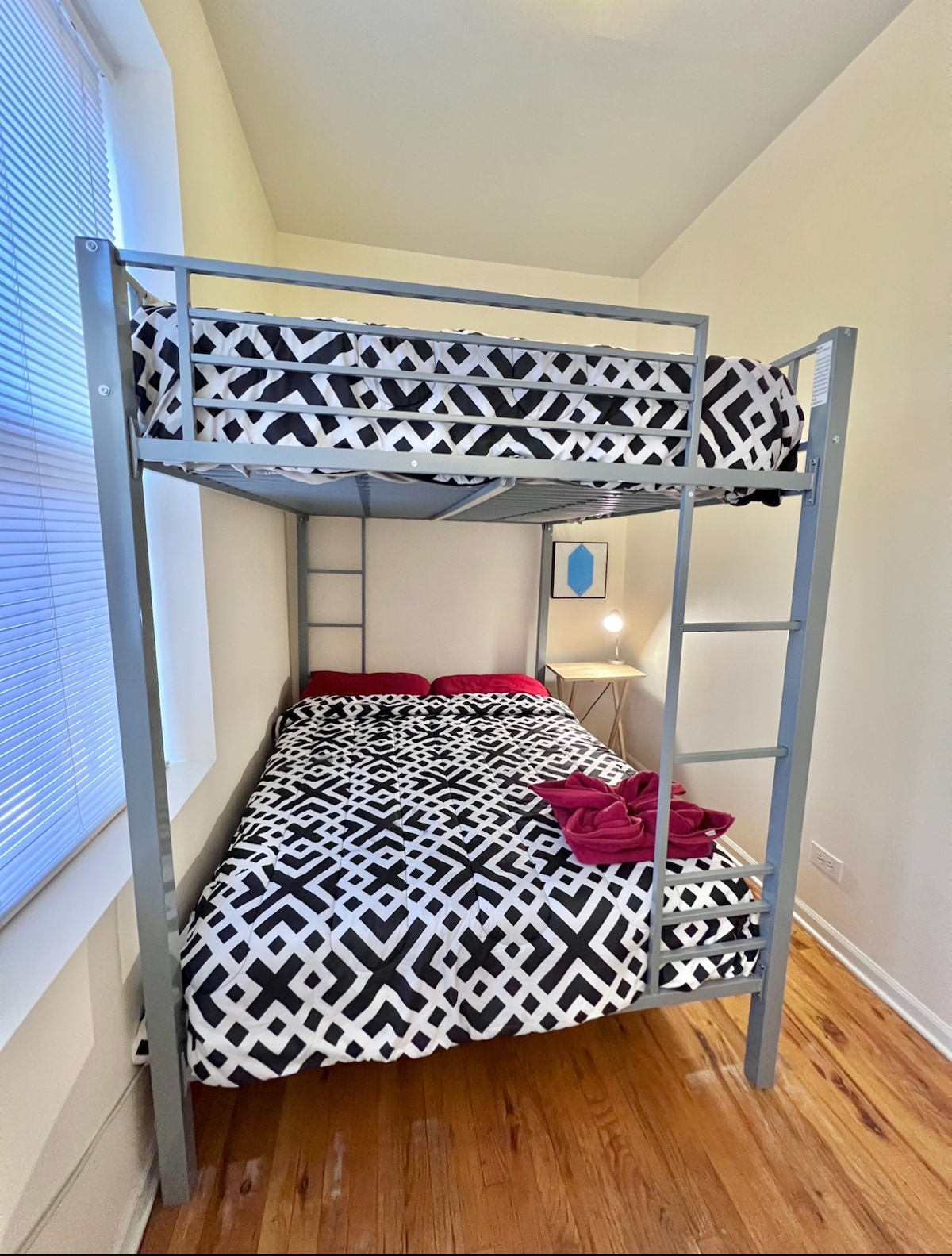 Chambre privée, salle de bain partagée avec 1 autre voyageur . Lit queen, bureau et chaises, 32 in smarTV, mini-réfrigérateur. Situé dans la région historique de Douglas, monument de Chicago. À proximité de la station de métro, de l'arrêt d'autobus, de l'IIT, de la boucle, du campus des musées, de McCormick Place (à 25 min à pied, ou du busn °3 à 7 arrêts, ou d'Uber< 10 $ ), du stade des chaussettes blanches, de la 31e plage. Le quartier est calme et sûr, à proximité des restaurants et des supermarchés. Parking gratuit dans la rue. La chambre est au 2nd FL, serrure à clé patio sur le toit avec vue DT. Lave-linge séchant au sous-sol.