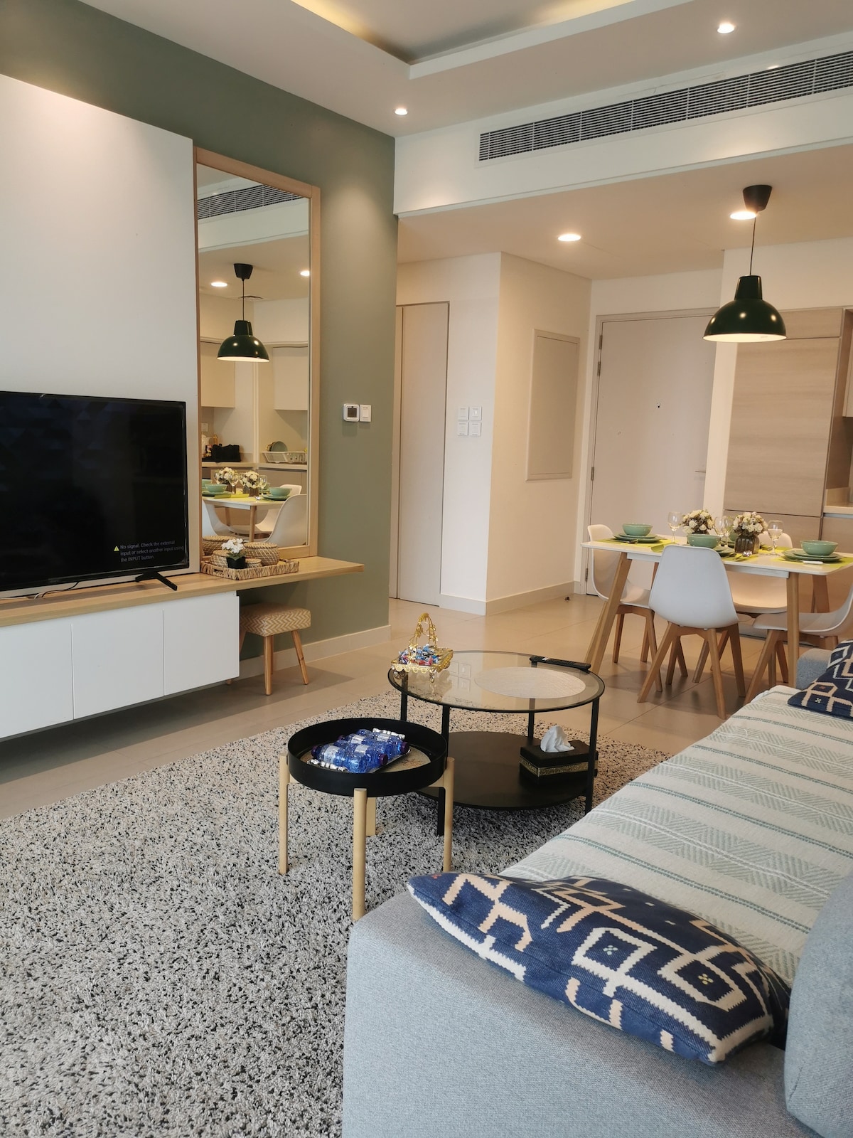 Kick back and relax in this cozy, stylish condo. The Condo 327 is a brand new sea + city view 1BR well-equipped apartment, with two private balconies w/outdoor swing, PS5, two smart TV’s (with Netflix), comfy feathered bedding, high-speed wifi, toiletries and fully-fitted kitchen on the 32nd floor of a gorgeous newly-built and secure building. Full access to all amenities; - Fitness center - Swimming pool - Sauna - Cinema - Squash court - 24/hr security.