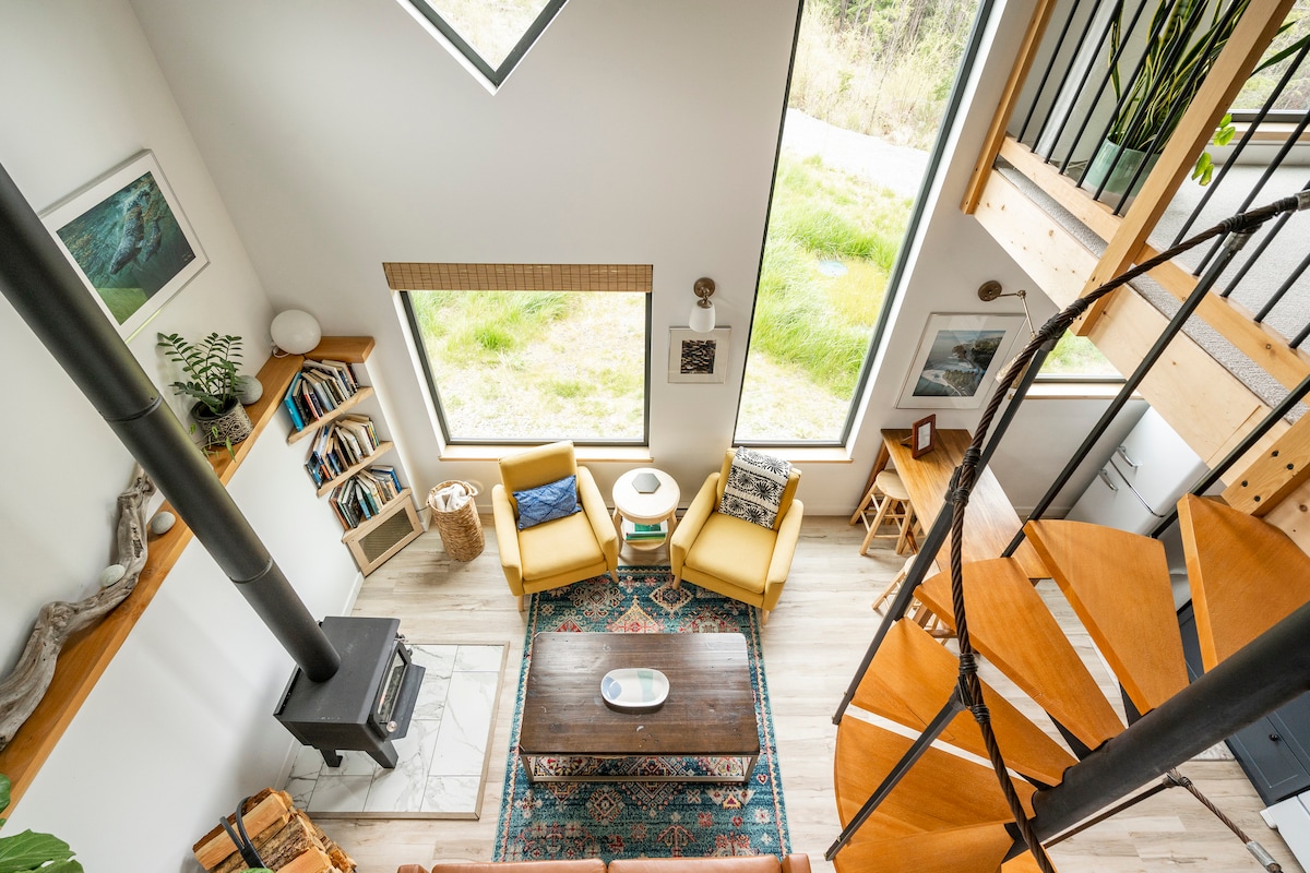 Une suite et un sauna parfaits au bord de l'océan, nichés dans les arbres et les fougères au bout d'un cul-de-sac tranquille. La suite conteneur d'expédition nouvellement construite est moderne, lumineuse, sans encombrement, propre et dispose d'un sauna/d'une pièce chaude. Un séjour idéal pour un ou deux voyageurs. Restez à l'intérieur et détendez-vous, ou descendez le sentier à travers la forêt pourra vous mener à l'océan où vous pourrez regarder les vagues, les couchers de soleil ou continuer à marcher jusqu'à China Beach. L'emplacement est calme, sûr et confortable.