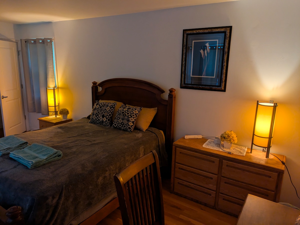 Note moyenne de 5 sur 5, 14 commentairesChambre Queen de luxe TRI avec wifi et stationnement gratuits.