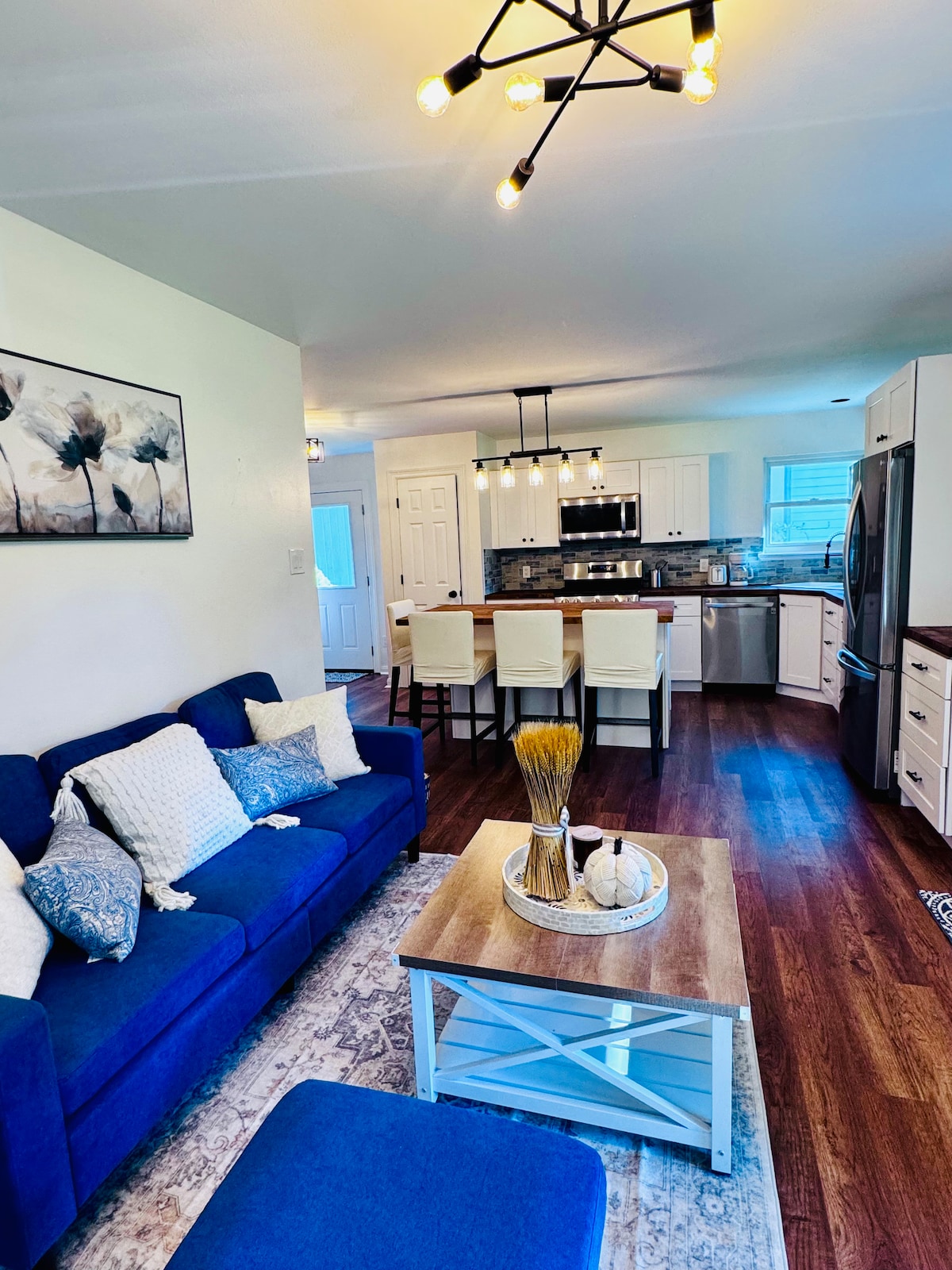 This 1940’s house is in a quaint quiet area next to great park! 2 mi from main interstate. 1100sf, 2 large bedrooms, comfy large Livingroom, 2 smart TV's. 1 bath-tub/shower combo, kitchen is stocked/cook ready, WIFI 400speed, large fenced backyard w/patio & lakeview. Outside BBQ pit and chairs. Window unit cooled, space heater warmed. Lots of extras! **Be sure to read detail under property description.