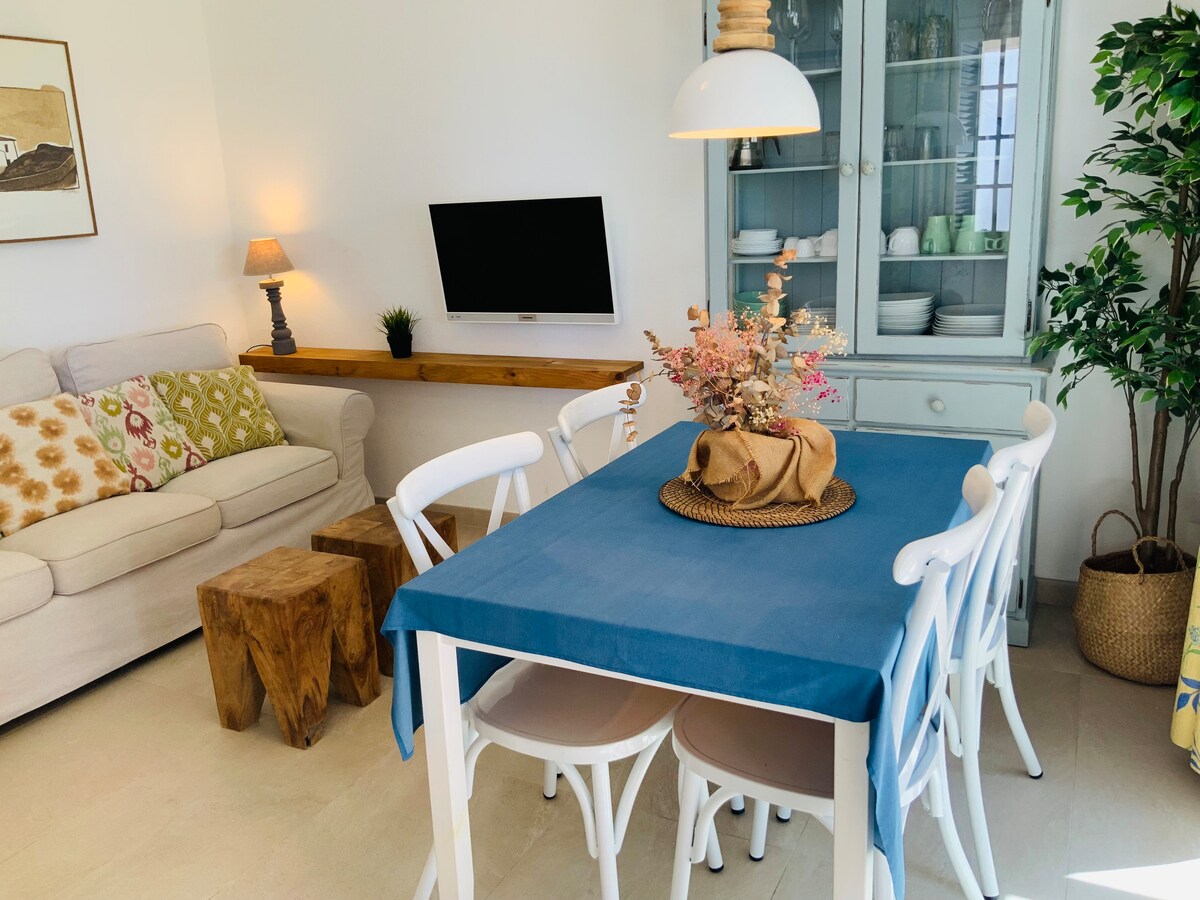 Bienvenue à la Casa Brisa. Un espace confortable avec un jardin privé, conçu pour vous offrir une expérience vraiment relaxante. Le décor reflète l'essence de Minorque, avec des matériaux naturels et des détails attentionnés qui invitent au calme et à la déconnexion. Le jardin, mit 60 m2 est parfait pour se détendre à l'extérieur. Située dans un quartier résidentiel paisible avec une forêt de pins et une belle piscine partagée, la Casa Brisa se trouve à seulement 150 mètres des plages de Son Xoriguer et Cala Bosch.