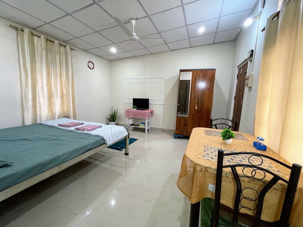 Ce 1bhk se compose d'une chambre avec une salle de bain attenante, une salle à manger et une cuisine entièrement fonctionnelle. La chambre est climatisée, et la salle de bain dispose d'un geyser. Il se trouve au rez-de-chaussée d'une entrée séparée. Il y a un parking pour une voiture/vélo. Wifi disponible. Un queer et un espace adapté aux couples pour les voyageurs de 18 ans et plus.