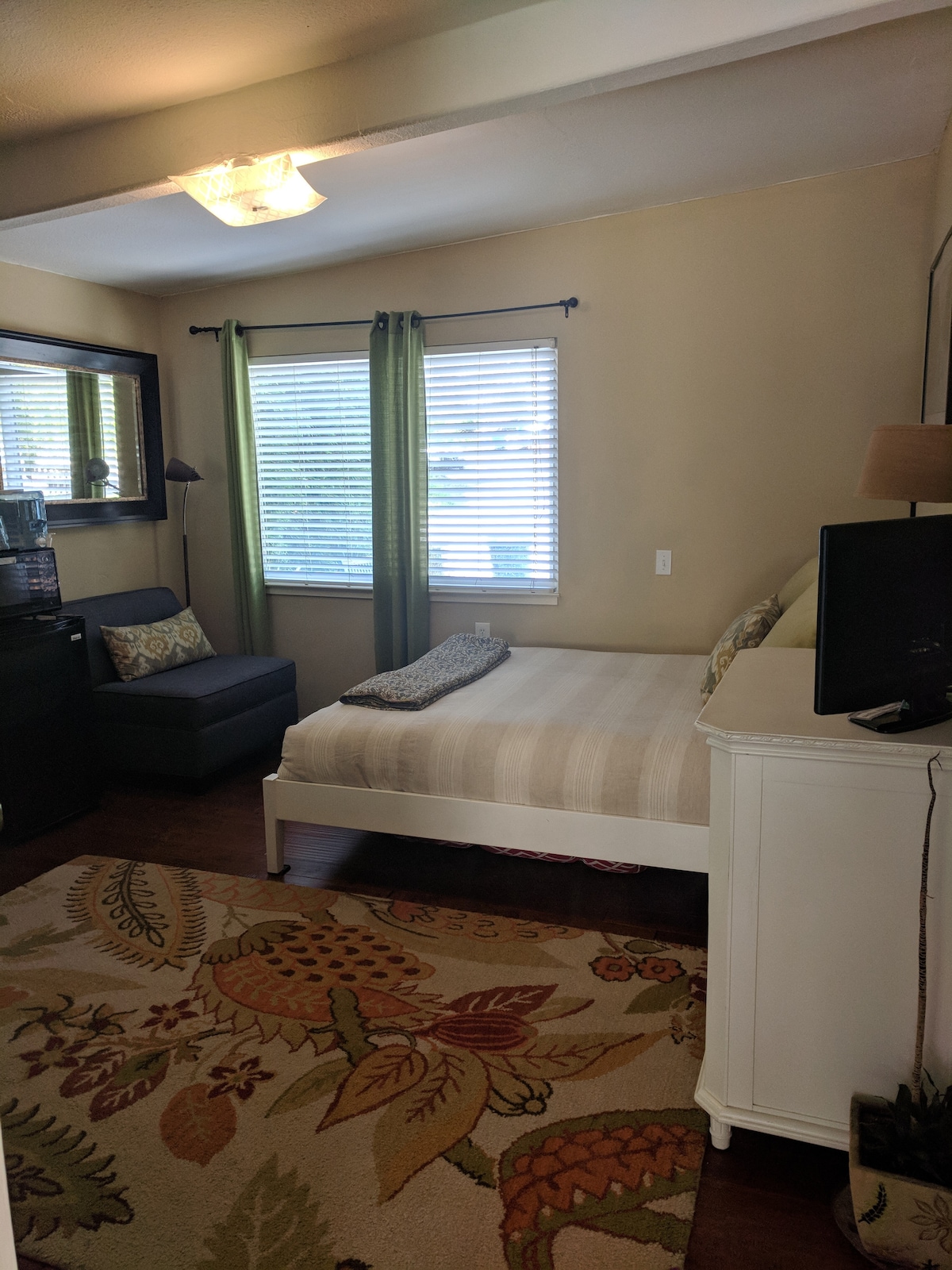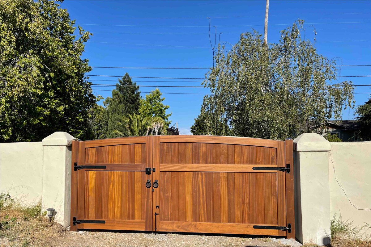 En tant qu'artiste, je suis profondément intéressé par l'esthétique. Je pense que j'ai réussi à créer un endroit magnifique et reposant pour la détente. Le lit queen size donne sur un refuge d'oiseaux sur le bassin versant de Valencia Creek. La cuisine comprend un réfrigérateur rempli de friandises, un four à grille-pain, un four à micro-ondes, une cafetière, une cafetière à piston et une plaque de cuisson pour une cuisine légère. Vous pouvez utiliser le four/la cuisinière dans la cuisine principale avec des arrangements préalables. Un barbecue au gaz dans l'arrière-cour est disponible pour une cuisine plus lourde (ou si vous prévoyez de cuisiner du poisson !) Un sèche-cheveux et du shampooing sont disponibles dans la salle de bain privée spacieuse. Des peignoirs épais sont fournis pour votre confort, ainsi que des serviettes et des chaises de plage si vous décidez de passer du temps sur l'une de nos belles plages. Il y a une grande télévision connectée à écran plat avec Netflix. Beaucoup de matériel de lecture et un bureau sont également à votre disposition. Vous avez une entrée privée avec une entrée codée. Vous avez une entrée privée avec une entrée codée. Vos chambres sont privées et vous avez votre propre porche et vous pouvez utiliser les cours/patios. Je partage la maison avant avec mon partenaire et nos deux chiens. Nous serions ravis de vous rencontrer et peut-être de partager une tasse de café ou un verre de vin (selon l'heure de la journée !), mais nous respecterons également votre besoin/désir d'intimité si vous préférez. Je me ferai un plaisir de vous fournir toutes les informations ou commodités qui rendront votre visite plus confortable et agréable. Cette maison est proche des belles plages du sanctuaire marin de la baie de Monterey et de la forêt de Nisene Marks, à seulement un mile du village d'Aptos, au sud de Santa Cruz et de la promenade et au nord d'Elk Horn Slough et de l'aquarium de la baie de Monterey. Il est facile de se garer dans notre impasse calme. Le chemin en dalles à gauche de la propriété vous mènera à une porte et à votre porche/entrée privée. Fournissez un code à 4 chiffres avant votre arrivée et je programmerai l'entrée pour votre commodité. Pas de clés à gérer. Les transports en commun sont disponibles à un mile de la maison. Uber est une alternative populaire dans notre région. Nous sommes à quelques minutes d'une scène de centre-ville animée avec des salles de concert et des restaurants, des magasins, des galeries d'art et la promenade SC Beach Boardwalk. L'observation des baleines, le kayak, le vélo et les sentiers de randonnée se trouvent également à quelques minutes seulement. Mon logement est parfait pour les couples, les aventuriers en solo, les voyageurs d'affaires ou ceux qui recherchent une retraite tranquille.