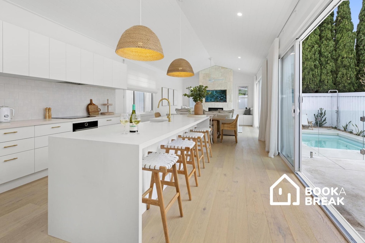 Au moment où vous entrerez dans « Sorrento Luxe », vous souhaiterez avoir réservé plus longtemps. Une maison moderne avec un grand séjour ouvert, une salle de cinéma maison et une piscine chauffée par le soleil. Une cuisine de chef avec tout le confort moderne s'ouvre sur un grand salon. L'espace de divertissement extérieur couvert avec barbecue vous permet de profiter de votre environnement toute l'année. Située à quelques minutes de la rue principale de Sorrente, cette spectaculaire maison de trois chambres a tout pour plaire. Il y a beaucoup de souvenirs à se faire dans notre belle maison.