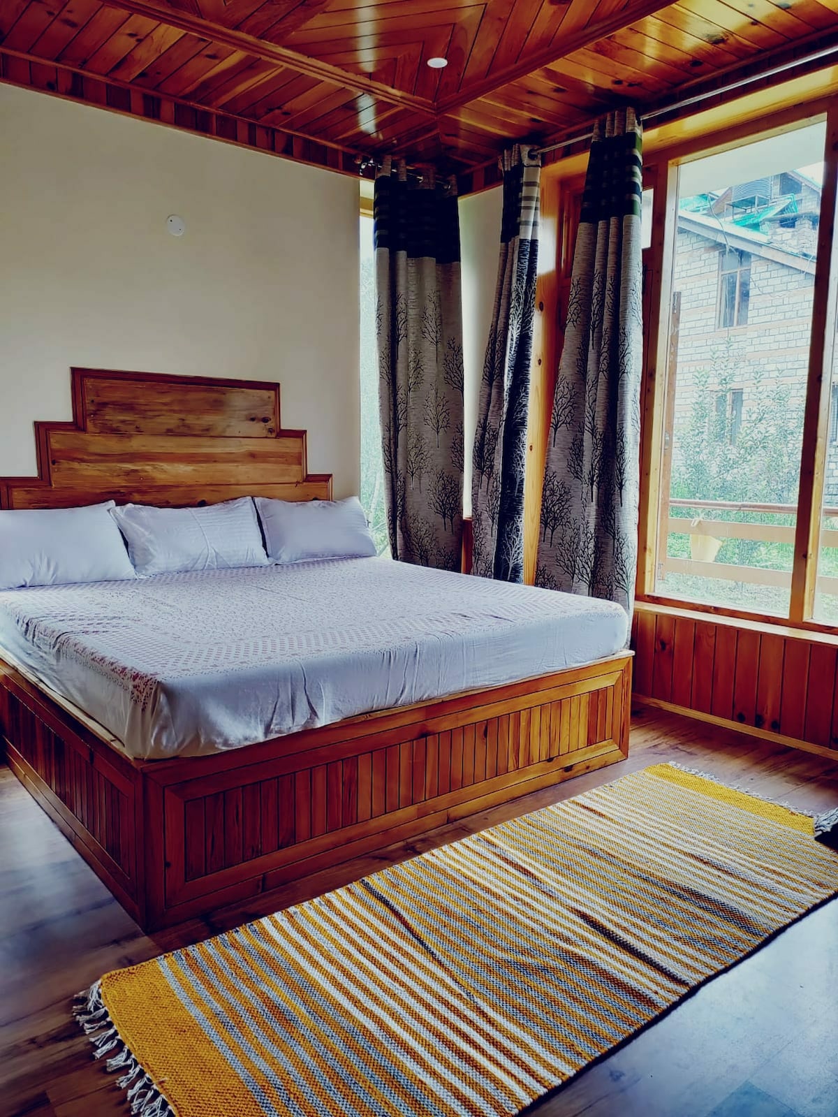 Chambre dans un cottage en bois de style kathkuni dans l'Himalaya