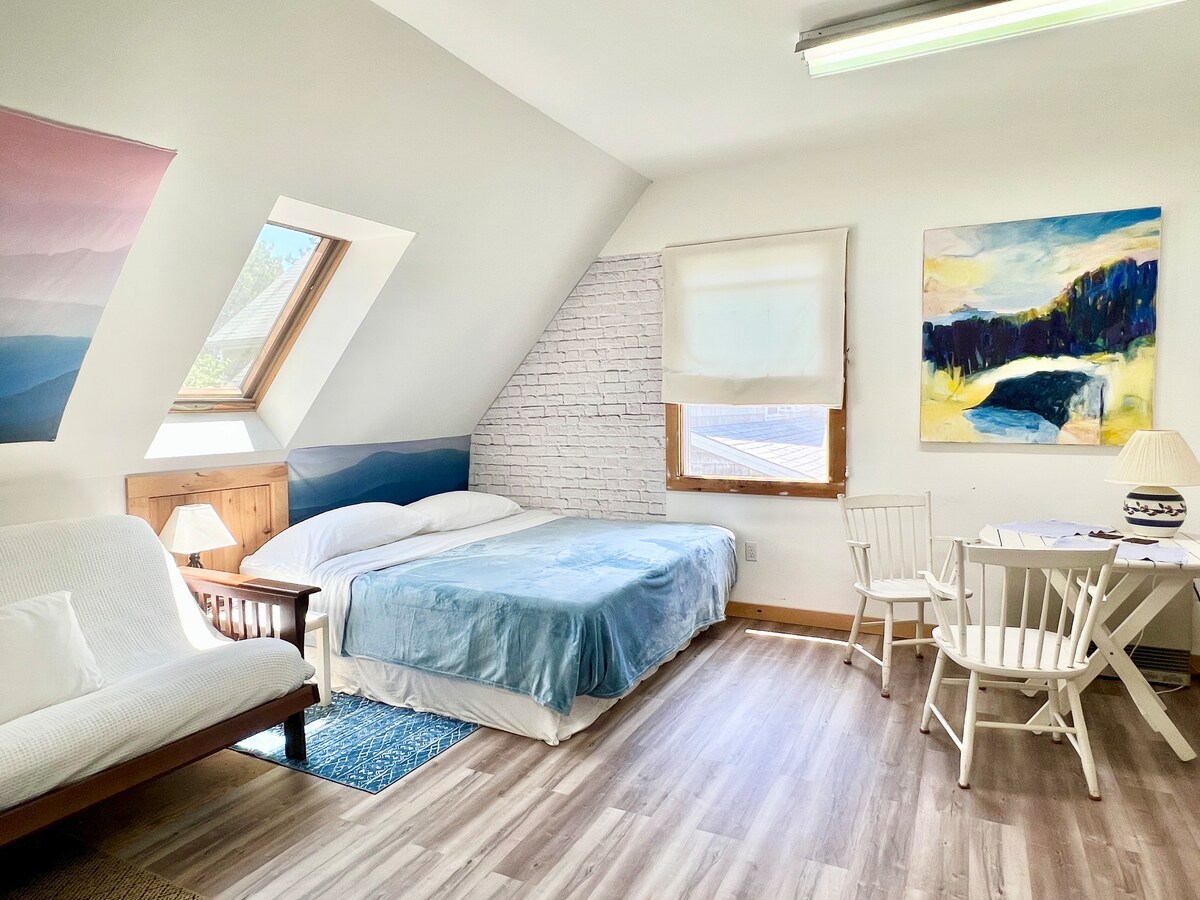 Autrefois un atelier d'art, cet espace privé, lumineux et confortable est niché sur une route de plage tranquille. On y trouve de l'art local, des livres et une ambiance de plage créative et décontractée. Paisible, relaxant et à quelques pas de la plage, de sentiers panoramiques, d'étangs tranquilles et de l'arrêt de la navette. Avec la location de vélos et de kayaks à proximité, c’est un endroit idéal pour les amoureux de la nature et des aventures en plein air, tout en étant à seulement quelques kilomètres de la ville historique d’Edgartown.