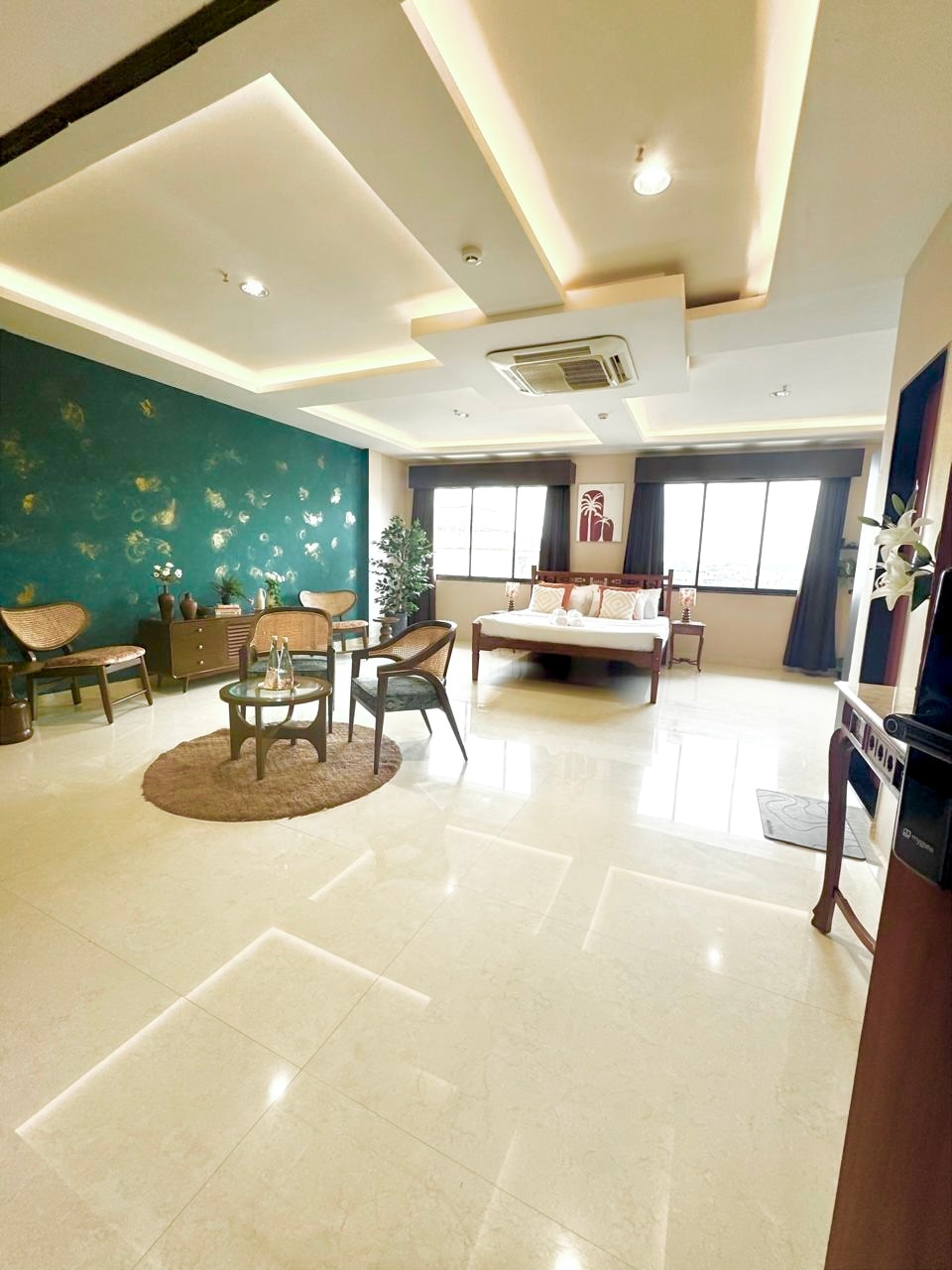 Bienvenue, Lorsque vous entrez dans la suite, son décor esthétique et sa vue vous laisseront bouche bée. De larges fenêtres avec moustiquaires vous aideront à profiter de la vue. L'espace dispose de : ▪️1 chambre ouverte avec un lit queen size. Un canapé convertible 6x6 est fourni dans le séjour pour accueillir 4 personnes. La ▪️salle de bain avec articles de toilette de base est conçue esthétiquement avec des portes vitrées. ▪️Le salon dispose d'un canapé 6 places face à la télévision connectée. Une ▪️petite station de thé/café avec mini-réfrigérateur est à votre convenance. Profitez de vos nouvelles photos !