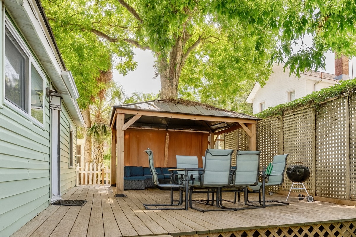 Le Duffy Street Bungalow est un bâtiment victorien de 2 étages, spacieux, historiquement détaillé et construit en 1900, dans un quartier magnifique et sûr près de Forsyth Park et à quelques pas de River Street et de toutes les attractions du centre-ville de Savannah. Dixon Park se trouve directement en face. Cour clôturée et parking privé. Système d'alarme, TV/Netflix mis à niveau, chaînes Amazon, tous les draps, tous les ustensiles de cuisine (casseroles/poêles/vaisselle/cafetière/ustensiles), barbecue au charbon de bois, lits confortables et super propre !! Ville de Savannah SVR-00659