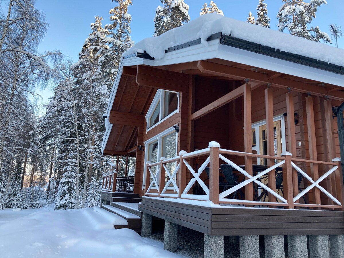 Villa Leikon – des vacances juste à côté de la nature et des lacs propres. Le chalet peut accueillir quatre personnes. Il y a de la place pour deux personnes pour dormir en bas et deux autres en haut dans le loft. Le bâtiment du sauna indépendant dispose également d'une chambre spacieuse pouvant accueillir deux personnes de plus. Au total, six personnes peuvent séjourner confortablement. Le bâtiment du sauna de plage est joliment attaché au bâtiment principal avec une terrasse ouverte. Le chalet est entouré d'une nature presque intacte avec suffisamment d'espace pour se détendre à l'extérieur.
