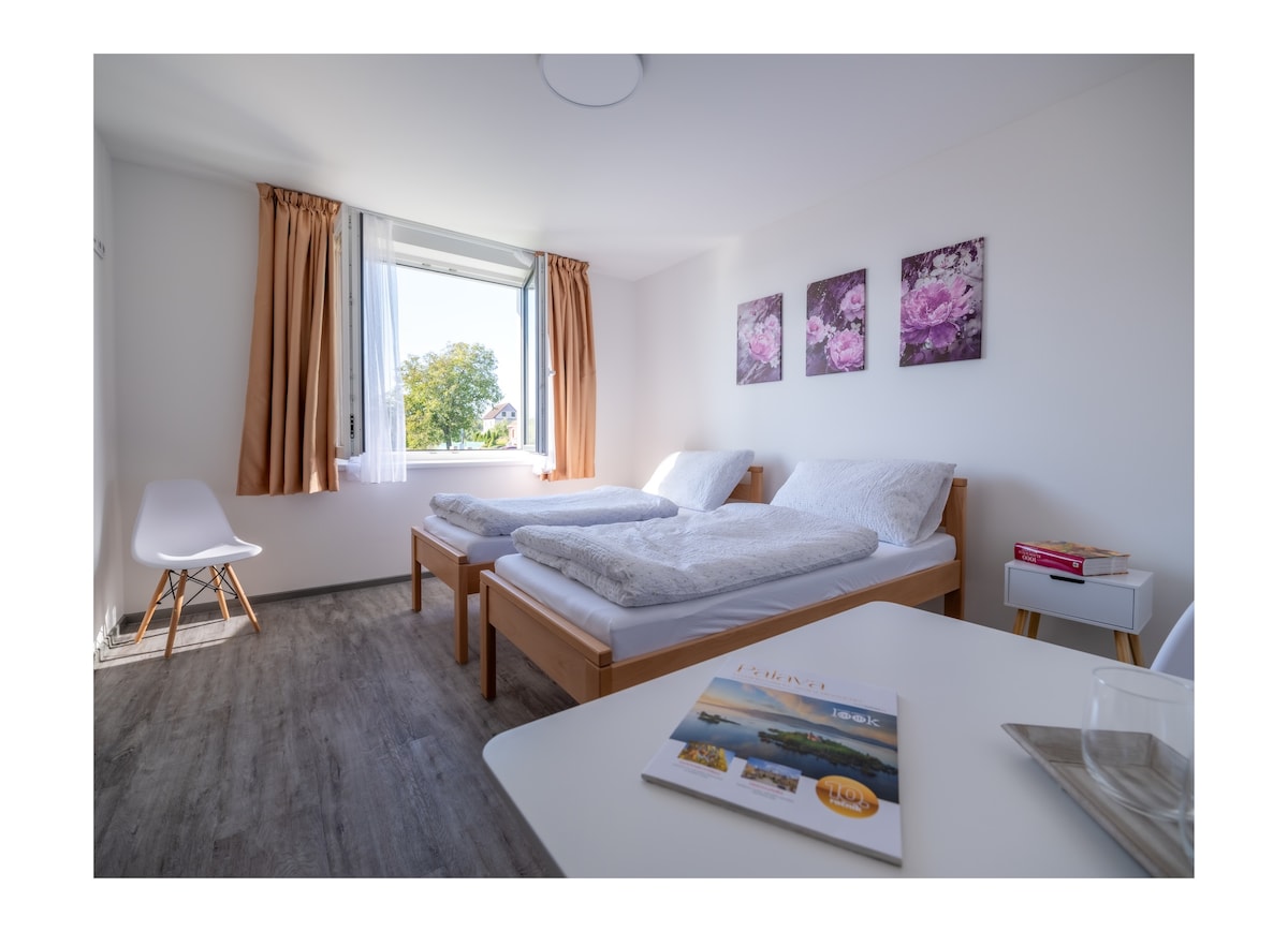 Appartement ensoleillé dans un endroit au calme à quelques minutes à pied du centre. Parking privé gratuit dans la cour. Lit double disponible de taille 220x200cmcm, matelas gonflable pour deux personnes, canapé pour 2 personnes supplémentaires et cuisine et salon entièrement équipés. Appartement ensoleillé dans un endroit calme Notre logement est idéal pour des vacances plus longues, comme une alternative au travail à domicile ou pour les familles.