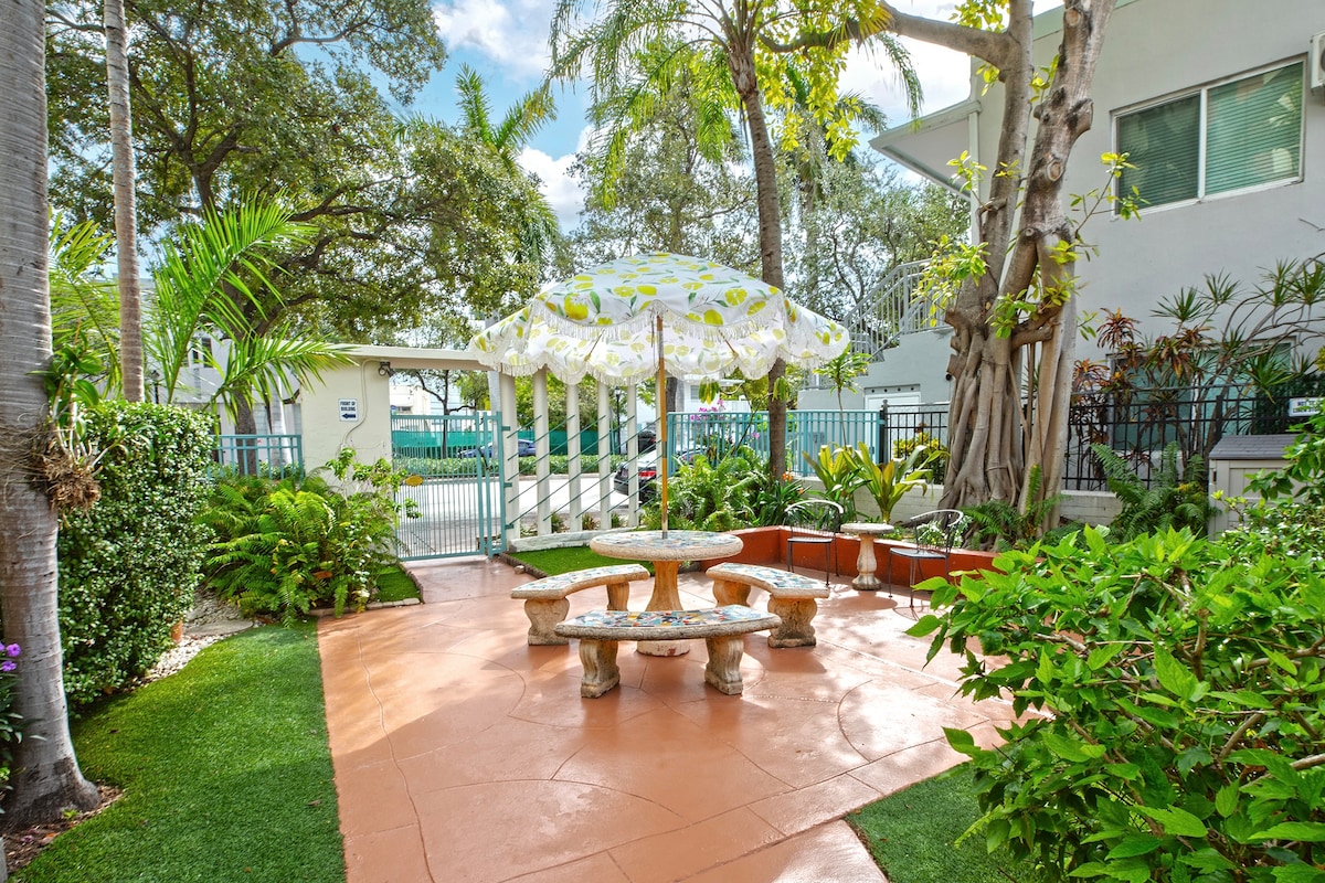 Restez dans le quartier historique résidentiel Art déco exclusif, au cœur de South Beach, à quelques pas de l'emblématique Ocean Drive et de la plage! Cette villa magnifiquement rénovée dispose d'une chambre et d'une salle de bain, mélangeant soigneusement le charme historique et le confort moderne. C'est idéal pour des vacances reposantes, une escapade en famille ou un voyage d'affaires. ** Il s'agit d'un charmant bâtiment de 1927 à Miami Beach ; comme il s'agit d'un logement au premier étage, certains bruits peuvent provenir d'en haut, donc les voyageurs sensibles au bruit devraient en tenir compte avant de réserver.