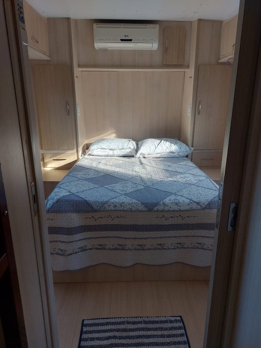 Le Motorhome, à Campo Alegre SC est un Mercedes 1963. Il est aujourd'hui garé sur un beau terrain en pleine nature, prêt à accueillir jusqu'à 4 personnes ! Nous sommes bien situés. Dans notre camping-car, nous voulons offrir une expérience inoubliable et agréable à nos clients... Le camping-car dispose d'un espace extérieur, qui contient une cuisine avec barbecue et salle de bain. À l'intérieur du camping-car, nous avons une chambre, une cuisine et 2 canapés convertibles...