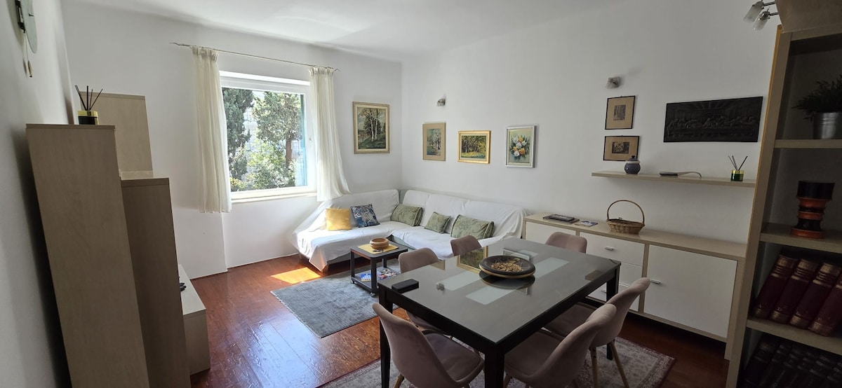 Cet appartement confortable d'une chambre est à seulement 10-15 min à pied de la célèbre promenade Riva et du palais Dioklecians, et à 10-15 min à pied de la mer. Avec une belle terrasse, cet appartement se trouve dans une partie calme de la ville entourée de la forêt de Marjan. Wifi gratuit et grande télévision LCD et stationnement gratuit autour de l'immeuble.