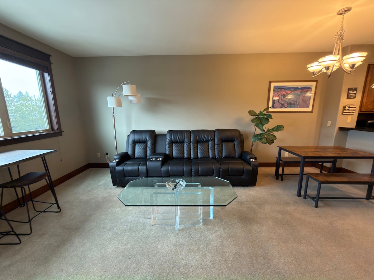 Évadez-vous au Downriver Condo, un refuge confortable, spacieux et calme dans le magnifique quartier Audubon-Downriver de Northwest Spokane. Ce condo moderne de 2 lits et 2 salles de bain peut accueillir confortablement jusqu'à 4 personnes avec des lits king size et queen size. Profitez d'une cuisine entièrement équipée, de café et de thé gratuits, d'une connexion Wi-Fi haut débit, d'une télévision Roku dans chaque chambre, de la climatisation/chauffage, d'une laveuse et d'une sécheuse, et d'un patio privé clôturé. Un séjour pratique et calme à quelques minutes du centre-ville de Spokane, des complexes sportifs et de l'aéroport.