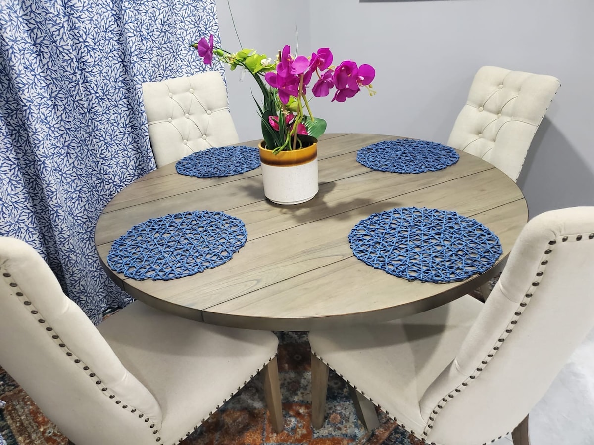Une suite élégante située dans une communauté haut de gamme dans le quartier supérieur de St Andrew dispose d'un lit queen size, d'une télévision à écran plat, d'une commode et d'une commode. La salle familiale dispose d'une télévision à écran plat, d'un four à micro-ondes et d'un réfrigérateur. Climatisation, salle de bain privée avec douche et jacuzzi (chaud/froid). Sécurité 24h/24, surveillance en direct, caméras extérieures et portail automatique. Une femme de ménage est disponible pour préparer le petit-déjeuner à faible coût. La cafetière Keurig est dans la suite. Accès à la piscine et au jardin luxuriant à l'arrière. Draps et serviettes fournis.