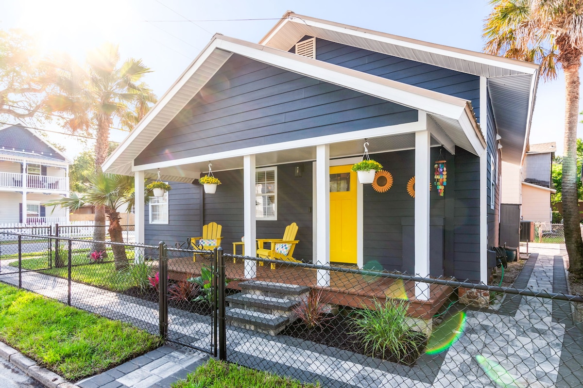 Profitez de St. Augustine – la plus ancienne ville du pays – et de tout ce qu'elle a à offrir à partir de cette escapade confortable sur le thème Boho avec 1 lit et 1 salle de bain. Situé près du cœur de la ville, il est assez proche pour marcher jusqu'à l'historique rue George Street tout en maintenant l'intimité et le confort tranquille. Avec de nouveaux équipements modernes, un porche arrière, une cour et un grand parking dédié, cette maison est tout ce que vous pourriez vouloir lors de votre voyage dans la belle ville de St. Augustine, en Floride.
