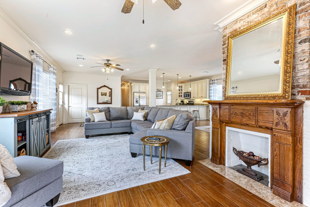 Rapprochez-vous de vos êtres chers dans ce logement familial. Nichée dans un « quartier calme » et à quelques minutes de l'accès au quartier français, cette vaste maison d'Orléans offre une oasis pour les aventuriers ! 2 étages, 5 chambres spacieuses, 3 salles de bains et une cour arrière privée. Emmenez toute la famille pour un séjour dans cette escapade sereine et spacieuse où vous pourrez vous détendre entre les aventures dans la ville ! ⚜️Bourbon Street - 7 miles Vieux carré⚜️ français - 6,6 miles ⚜️Caesars Superdome - 6,5 miles ⚜️Smoothie King Center : 6 miles