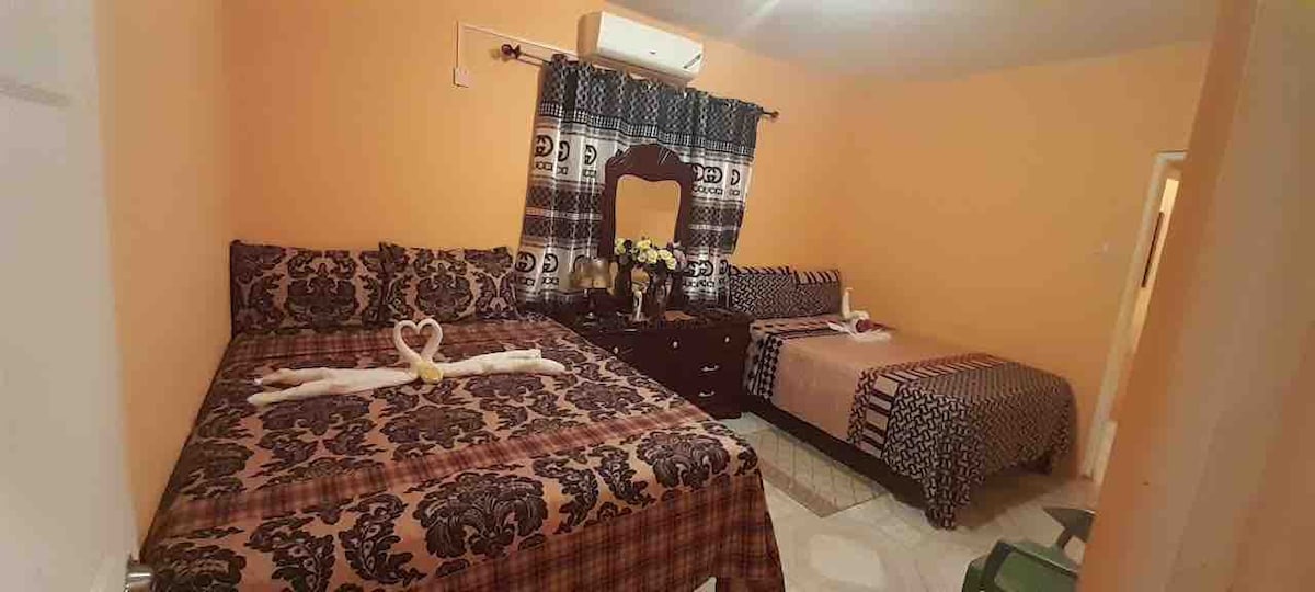 Bienvenue à Jamaica Oasis Suite. Un design jamaïcain élégant et élégant situé dans la ville ensoleillée de Portmore. Doté de 1 et 2 chambres avec leur propre salle de bains. La réservation de plus de 2 personnes entraînera des frais supplémentaires. Le nombre maximum de voyageurs autorisés est de 4. À seulement 10-15 minutes des principaux centres commerciaux/centres commerciaux et à 20 minutes des plages du Hellshire, de Sugarman et de Fort Clarence. Chef privé disponible moyennant des frais supplémentaires si nécessaire, réservé à l'avance. Venez profiter de toute la famille.