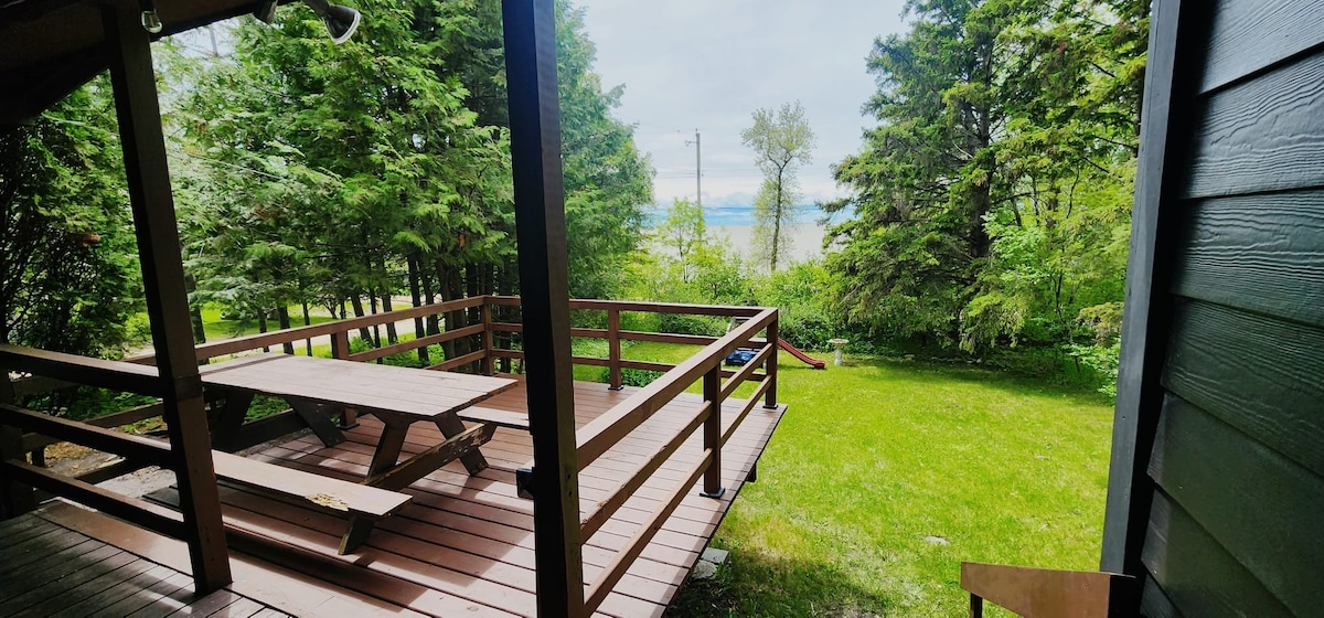 À DEUX MINUTES À PIED de la plage. Après avoir acheté cette maison au bord d'un lac en 2024, nous l'avons soigneusement rénovée. La cuisine, salle à manger et salon (avec cheminée à bois) sont à aire ouverte. Une grande véranda 3 saisons enjambe l'entrée de la maison. Chaque chambre dispose de draps propres, de édredons et d'un contrôle de la chaleur électrique. La cour arrière est privée, bien boisée et entièrement clôturée, avec un foyer. Plages de sable, kilomètres de sentiers pédestres et en hiver, pêche sur la glace. Notre ville balnéaire est un lieu de vacances idéal!