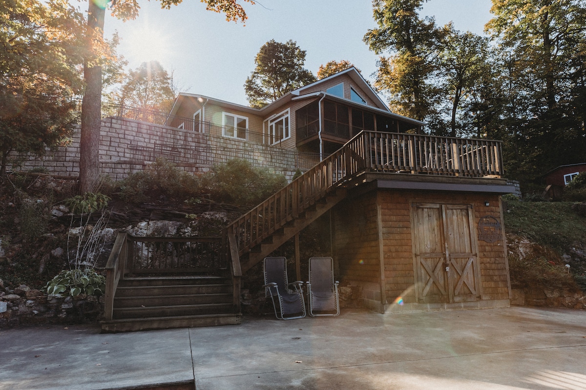 Lac Star au bord de l'eau avec kayaks et quai motorisé