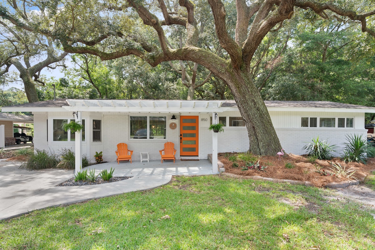Amenez toute la famille dans notre adobe récemment rénové, alliant confort et plaisir ! Cette retraite spacieuse dispose de 4 chambres magnifiquement aménagées et de 3 salles de bain complètes avec de nouveaux appareils électroménagers en acier inoxydable. Profitez de soirées mémorables autour du brasero confortable dans la vaste cour arrière clôturée. Parfaite pour les escapades en famille, les retraites relaxantes ou les vacances remplies d'aventures, notre maison accueillante est une base idéale pour explorer la côte de la Géorgie. Nous avons hâte de vous rencontrer !
