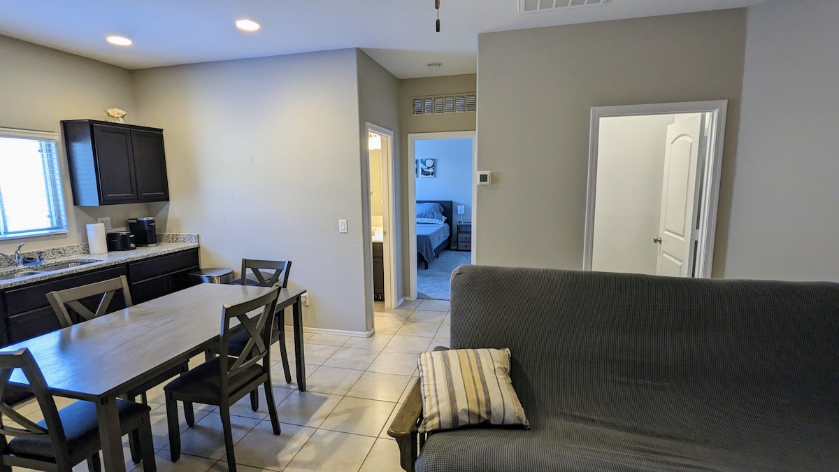 À côté de l'I-10 avec un accès facile et rapide aux activités, dans toute la vallée. Unité de 600 pieds carrés bien isolée avec climatisation et salon et cuisine spacieux et ouverts. Vue sur des montagnes paisibles. 👉 la maison peut être aménagée pour accueillir toute personne incapable de monter les marches jusqu'au loft (informez-nous avant l'arrivée) *10mjns à l'épicerie, à l'essence et à la nourriture *17 minutes du centre-ville de Casa Grande *17-19 minutes de Florence *23 minutes du centre-ville de Chandler *37-40 minutes de l'aéroport de Sky Harbor *37 minutes du train léger *40-45 minutes du centre-ville de Phoenix