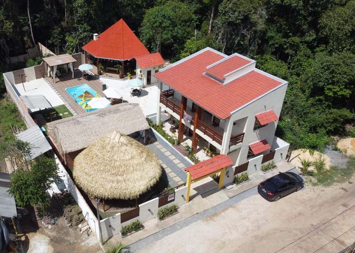Nous sommes une maison d'hôtes intime et une cuisine affective. Nous acceptons les séjours longue durée. Environnement rustique, aéré et confortable qui allie logement, gastronomie et hospitalité locale avec des services contemporains. Notre maison est ventilée et a une présence constante de singes, d'écureuils, de papillons et d'oiseaux incroyables. C'était la somme de notre expérience et de notre expertise.