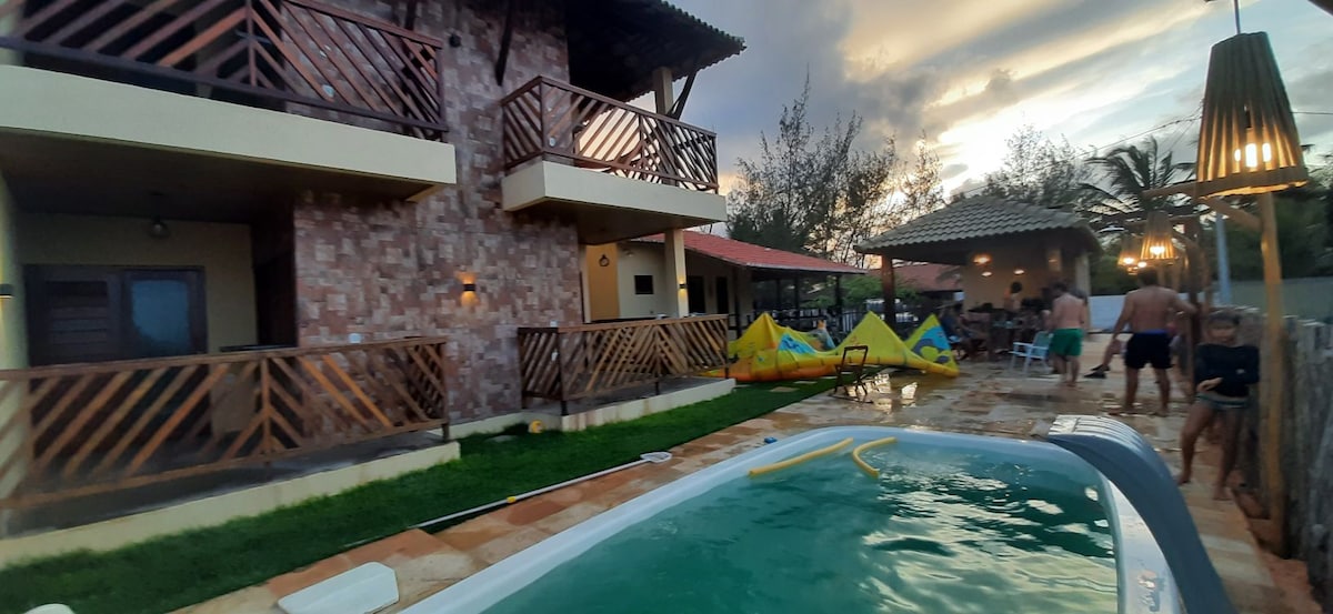 Bienvenue ! Notre maison est d'un pur confort. Dans notre appartement au rez-de-chaussée, vous pourrez profiter de beaucoup de confort : chambre charmante avec lit queen size, Split, télévision intelligente, 294 chaînes, Wi-Fi, placard, salle de bain et une cuisine avec un canapé-lit confortable, une table à manger et un garde-manger avec ustensiles ménagers. Pour les journées paresseuses, hamac sur le porche. Nous sommes à 800 mètres des plages de Jeri et à 400 mètres du centre, dans un quartier calme et approprié pour se reposer, à proximité d'un centre commercial.