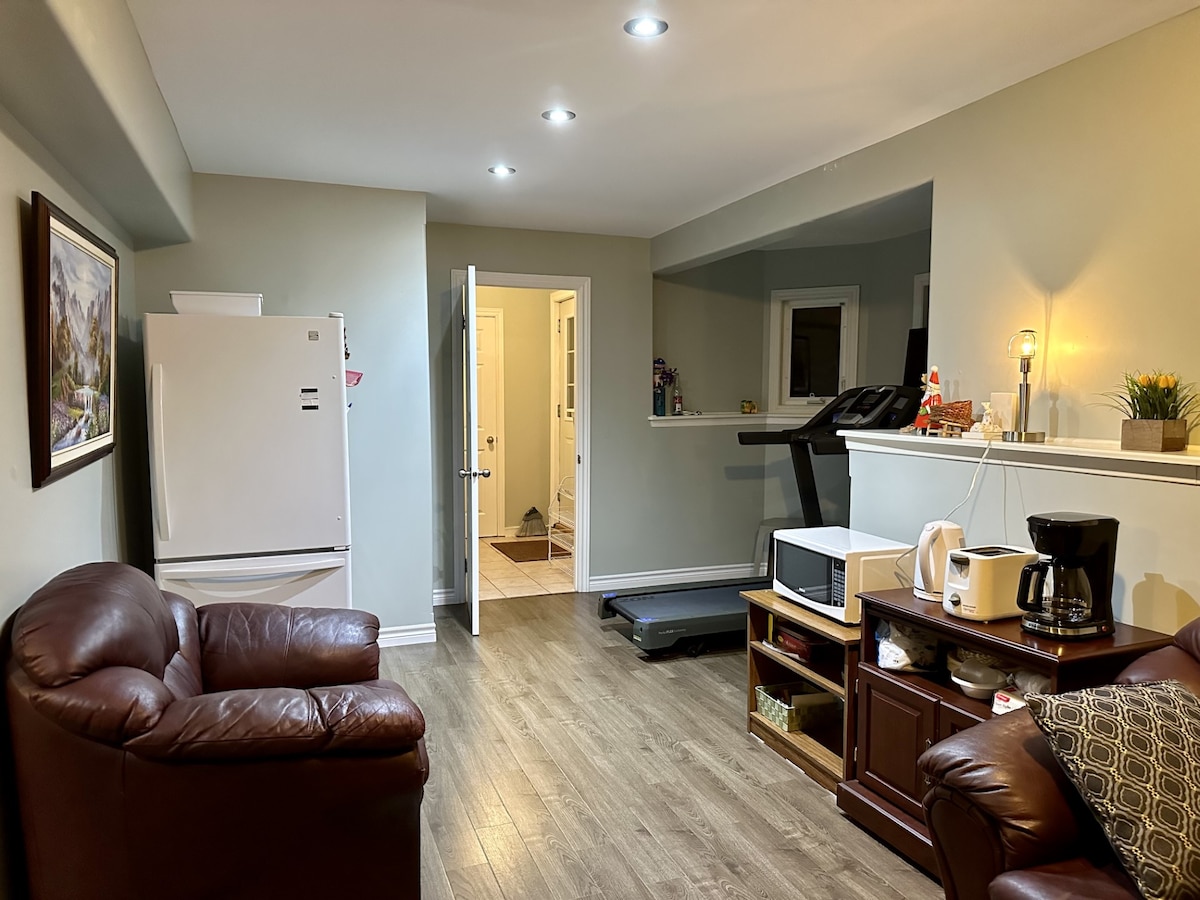 Détendez-vous dans ce logement où les CHIENS SONT LES BIENVENUS. Ce logement locatif spacieux dispose d'une chambre privée et d'un canapé-lit queen size si nécessaire. La KITCHENETTE DISPOSE d'un réfrigérateur-bar, d'un évier, d'un four à micro-ondes, d'un grille-pain, d'une bouilloire ainsi que de toutes les plats nécessaires. La cafetière à piston fournie est parfaite pour le café d'origine locale. Cette suite au sous-sol confortable et confortable dispose également de quelques bonus supplémentaires, tels qu'une table de hockey sur air, un tourne-disque et un tapis de course. Cozy Corner fournit également un parking privé et une entrée à serrure numérique.