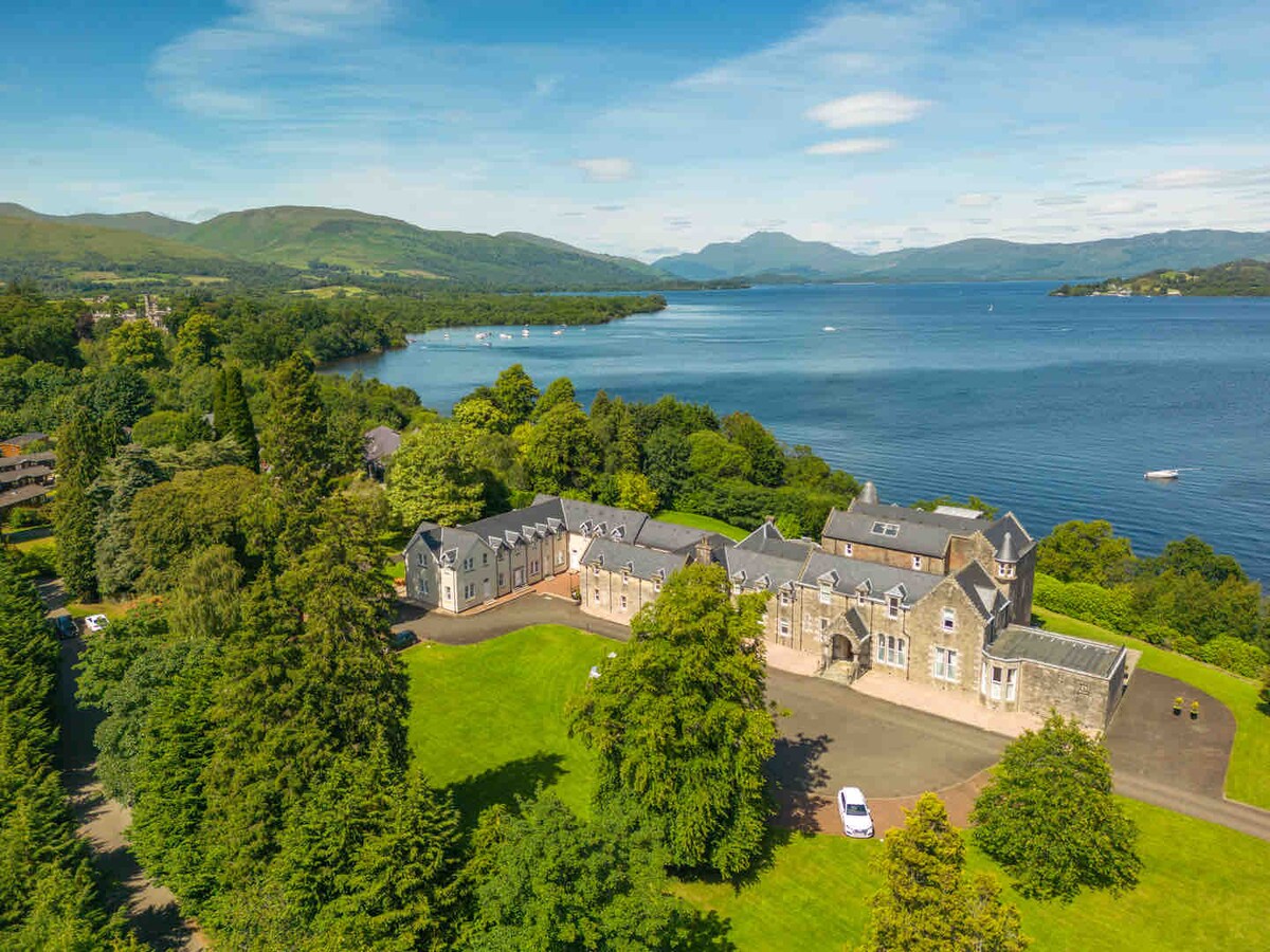 Superbe appartement penthouse dans le château de Lomond avec une vue imprenable sur le Loch Lomond et le Ben Lomond. Les trois chambres sont attenantes avec des douches modernes, des lits de luxe, des matelas, des draps en coton égyptien haut de gamme et une vue imprenable. Le salon et la salle à manger sont parfaitement aménagés pour assurer suffisamment d'espace pour les rassemblements sociaux. Distance jusqu'aux attractions locales : Plage privée - sur place Cruin - 100 m Duck Bay : 1 km Cameron House 1,5 km Lomond Shores : 2,5 km Golf de classe mondiale - 5-10 minutes en voiture