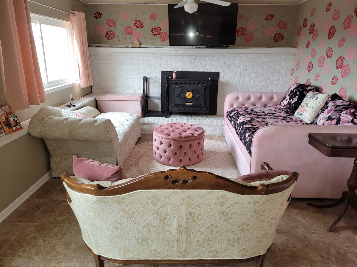 Vous allez adorer ce sous-sol privé de style campagnard. C'est une maison complète avec une cuisine, une salle à manger, un immense salon avec un grand canapé. 2 chambres à coucher, une qui peut accueillir 6 personnes et une qui peut accueillir 2 personnes et 2 autres espaces de couchage si vous voulez dormir sur le canapé. Vos animaux peuvent venir avec vous. Il y a une grande cour clôturée et un porche couvert pour s'asseoir et regarder les chevaux en se reposant avec une bonne tasse de boisson chaude. 3TV. Une buanderie que nous partageons pour un petit supplément de 5 $ par brassée