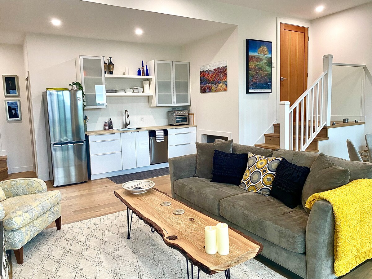 Une suite élégante située au cœur de la ville de Courtenay. Cette suite d'un lit et d'une salle de bain est au rez-de-chaussée et entièrement équipée ! Laveuse/sécheuse, cuisine équipée, baignoire profonde, carrelage de salle de bain chauffé et tout neuf. Nous n'avons pas terminé notre aménagement paysager, mais nous avons un jacuzzi gonflable dans un joli patio désigné. La suite se trouve à 30 minutes en voiture de Mount Washington, à quelques minutes du centre-ville, des sentiers, des rivières et des lacs. Venez profiter de tous les extras que nous fournissons et aucun nettoyage n'est requis. Soyez nos invités !