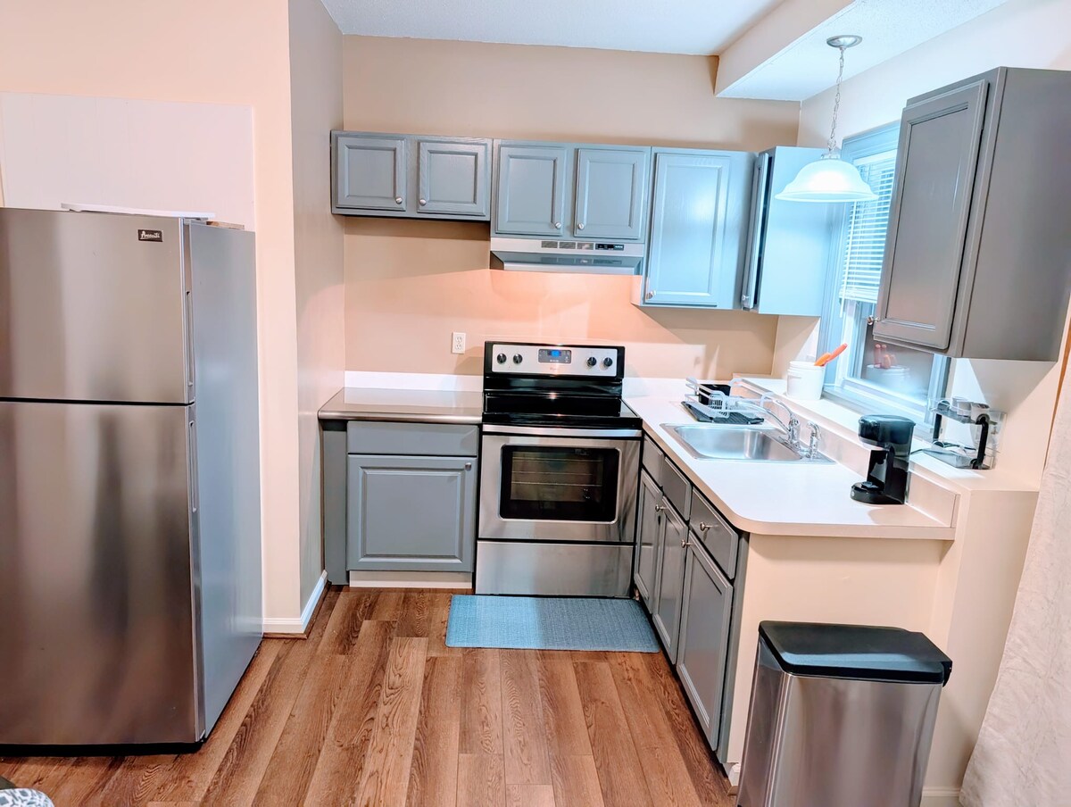 Bienvenue dans notre appartement charmant et élégant à l'étage, parfait pour une retraite confortable ! Profitez de l'intimité d'avoir tout le logement pour vous. Accédez à l'appartement directement par l'entrée arrière, en haut de l'escalier extérieur. Nous sommes idéalement situés à 10 minutes en voiture de l'aéroport international Bradley. À l'intérieur, vous trouverez : - Une chambre confortable avec un lit Queen Size, avec des draps propres - Une cuisine entièrement équipée, équipée : Casseroles, poêles, vaisselle, etc. Lave-linge et sèche-linge