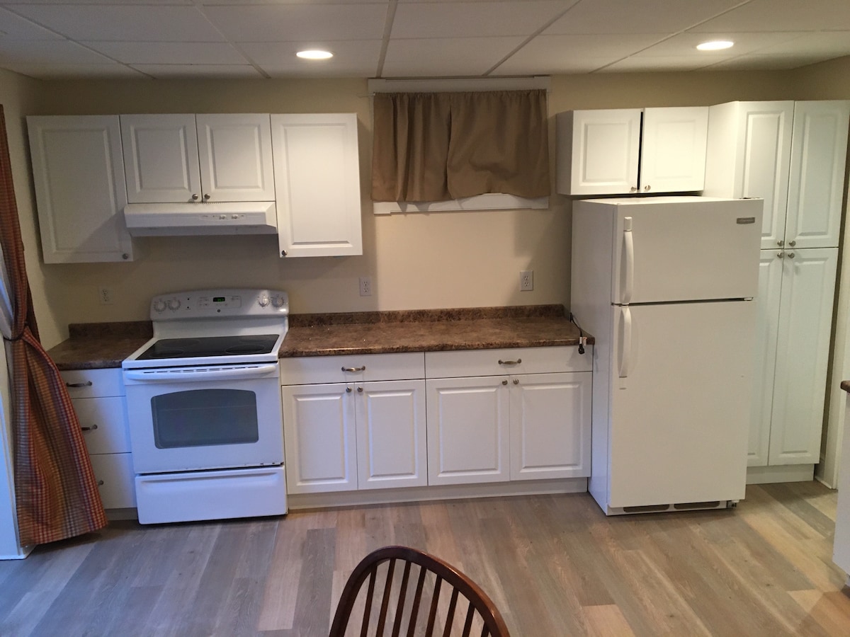 Bel appartement au sous-sol récemment rénové avec lumière naturelle. Hauts plafonds, porte patio, entrée privée, insonorisé, lave-linge/sèche-linge, lave-vaisselle, plancher de salle de bain chauffé par rayonnement, système de chauffage et de climatisation indépendant de la maison principale, parking hors rue pour un véhicule, parfait pour une personne ou un couple. Idéalement situé pour toutes les activités d'automne, les stands de ferme, la cueillette de pommes, le festival du film, les restaurants, le shopping. Cet appartement est vacant depuis l'été dernier et depuis qu'il a été rénové.