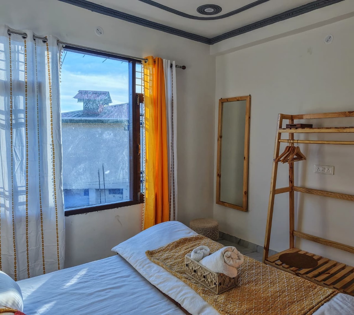 Un chalet indépendant confortable niché au milieu des champs agricoles, avec en toile de fond les majestueuses montagnes Dhauladhar et des cieux bordés de planeurs colorés. Notre logement est votre escapade rajeunissante parfaite. Veuillez noter : il y a un bâtiment partiellement construit visible du côté droit de la maison de boue (les travaux sont à l'arrêt) et notre chalet Jade a été récemment rénové. Les photos seront mises à jour d'ici le 31 mars après l'achèvement considérable des travaux.
