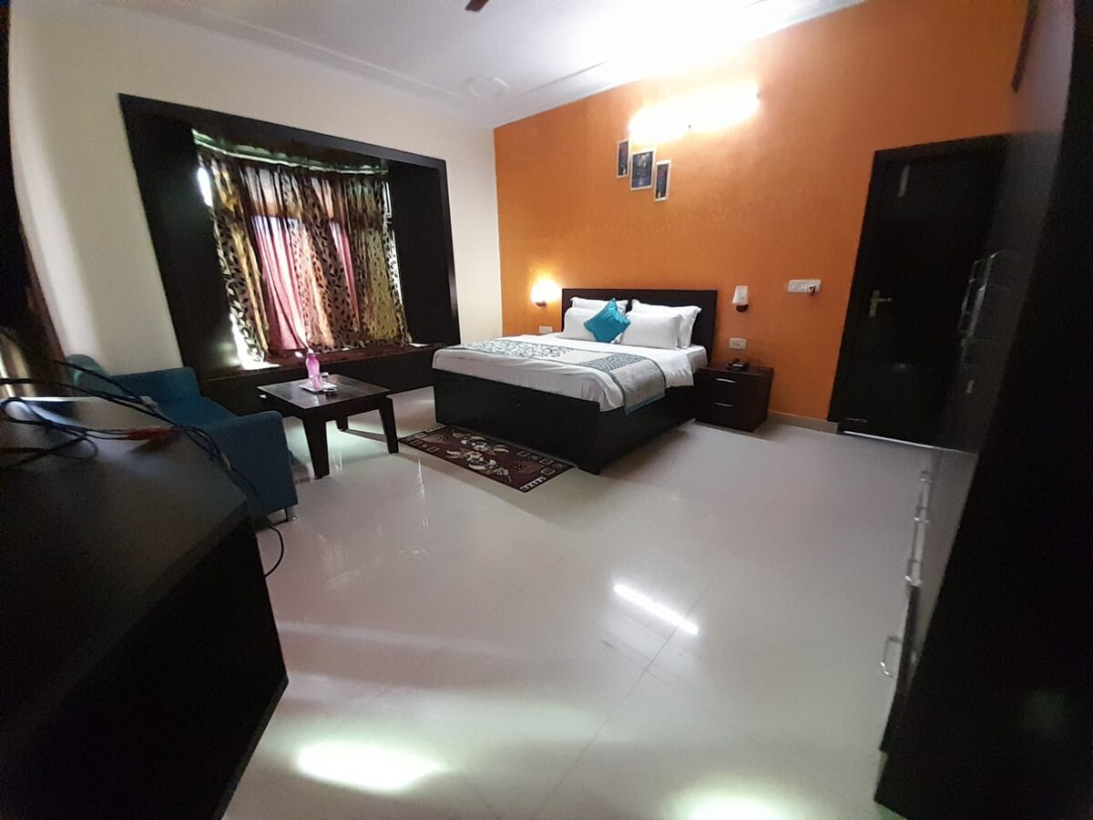 Chambre confortable avec coin repas, accès au restaurant et à la piscine. Détendez-vous dans cette chambre privée sereine et confortable nichée dans les collines de Bhimtal. Parfaite pour les couples, les voyageurs en solo ou les petites familles, la chambre offre une retraite paisible en pleine nature. Profitez d'un accès à une belle salle à manger partagée, à un restaurant sur place servant des repas locaux et multi-cuisines, et à une piscine étincelante pour se détendre et profiter du soleil.