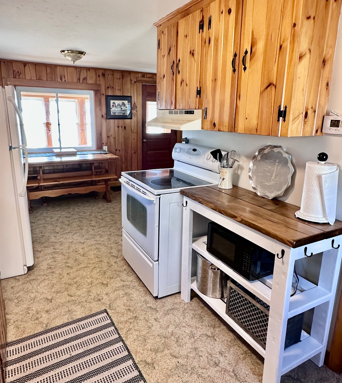 Ce chalet confortable de 2 chambres, une salle de bain, en pin en A est situé sur son propre point privé avec 350 pieds de front de mer ! Cuisinez sur le grill, le salon sur le pont ou le quai tout en profitant de la faune sur une belle rivière à marée. Observez les pygargues à tête blanche et les grands hérons bleus ! Il y a beaucoup de visites dans ce quartier pittoresque. Rockland est à seulement 10 minutes où vous pourrez profiter de boutiques, restaurants, musées, galeries, phares et festivals.