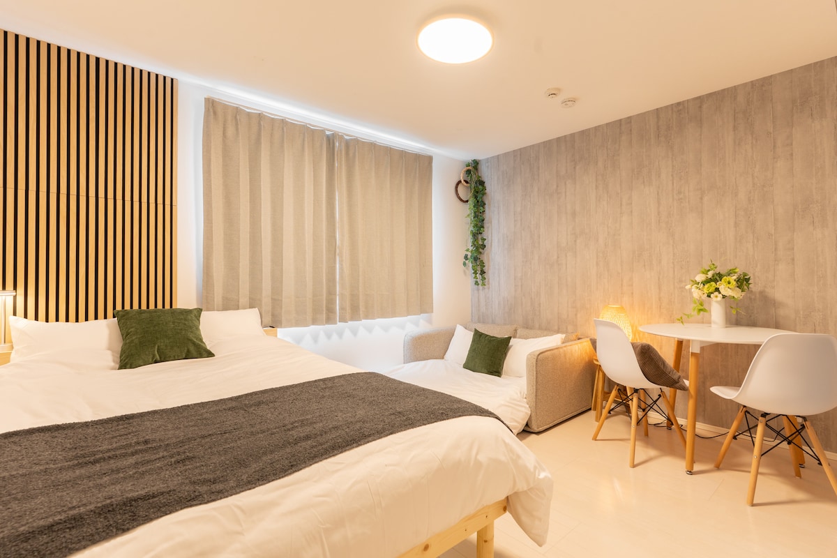 Japandi Studio calme et neuf|Proche JR・Métro|Lave-linge et sèche-linge|Ascenseur|Consigne à bagages