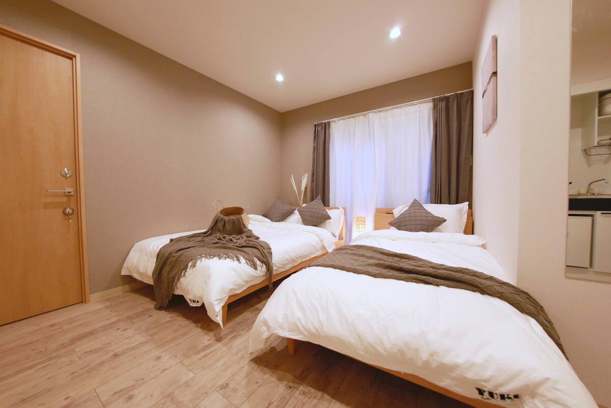 La ■chambre est située au 1er étage (chambre 101) ■C'est un immeuble sans ascenseur. ■Deux chambres et un salon, la superficie de l'appartement est de 39 ㎡ ① La chambre dispose de deux lits simples (98cm × 200cm) ② La chambre est équipée d'un lit double (140cm × 200cm) Les installations intérieures sont très récentes, le lavabo, les toilettes et la salle de bain sont séparés, ce qui permet de séparer l'humidité et la sécheresse, pour une propreté fraîche et soignée !